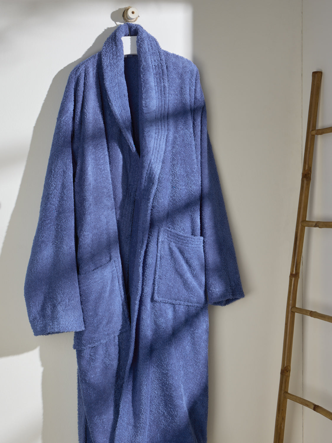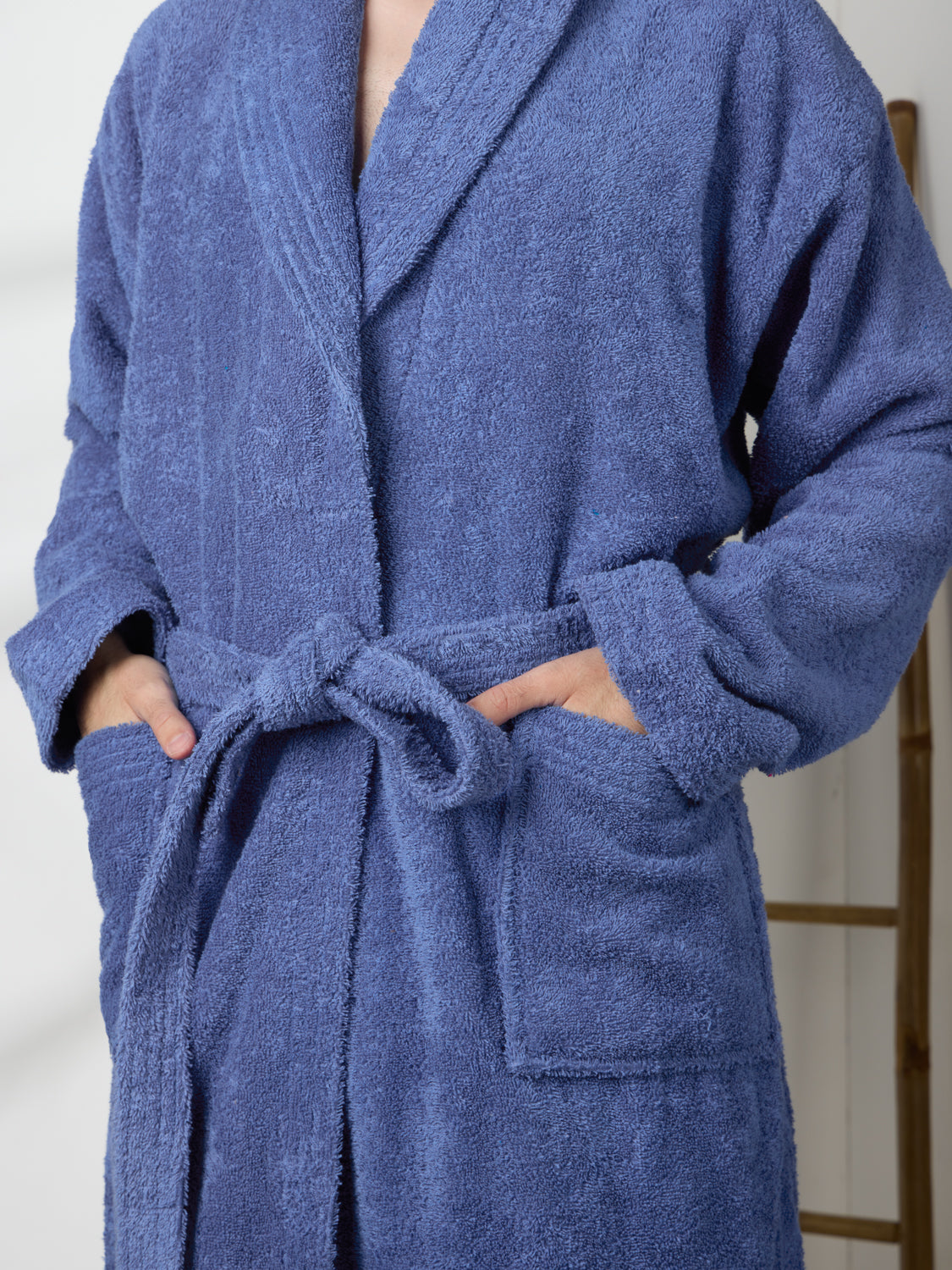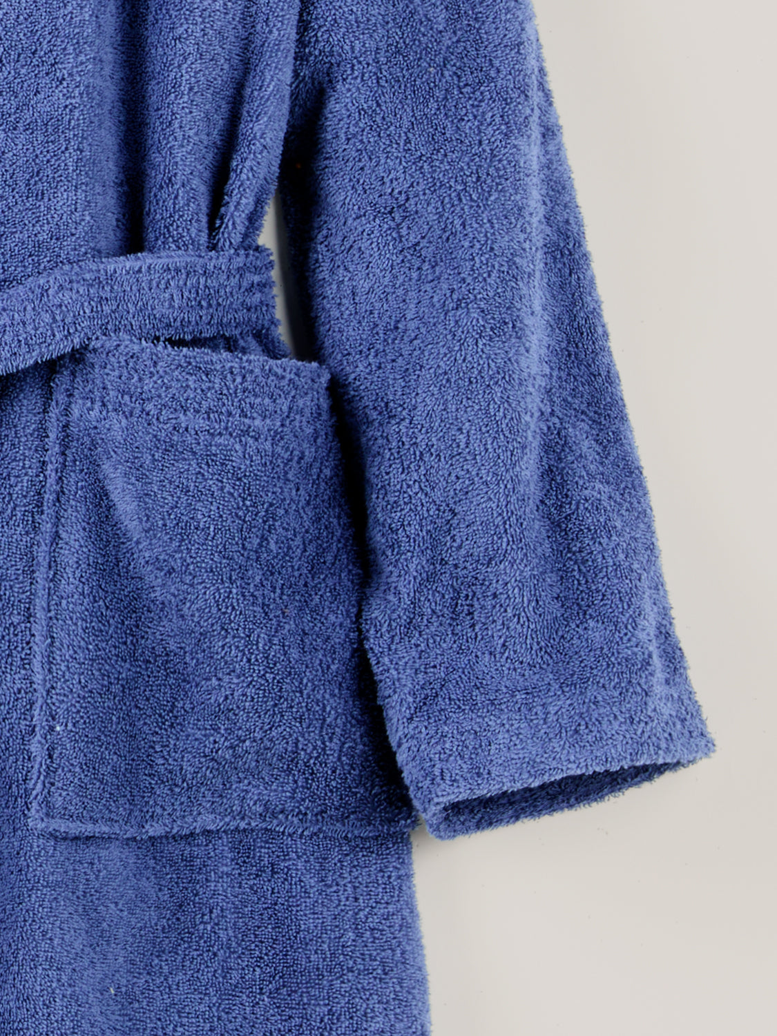 The classic American terry bathrobe in solid ultramarine will make your shower an even more comforting moment. A plush garment made from the softest 100% cotton. The weight of the robe is 450 gr/m2, providing you with quick drying and absorbency. Thanks to this garment, you can enjoy the best and most pleasant showers.