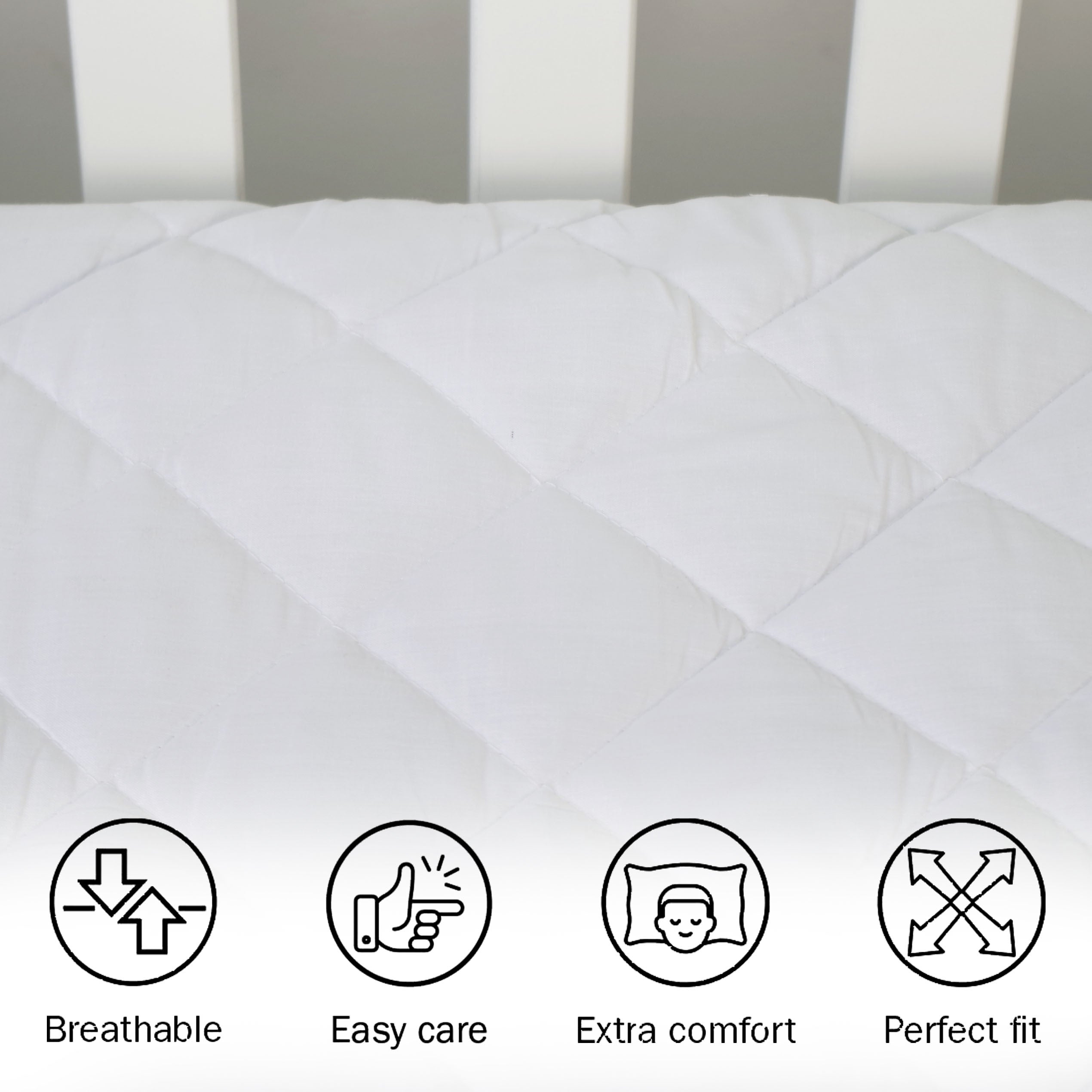 Protect your baby's mattress with this crib mattress protector. Babies spend a lot of time in the crib, whether it's nap time or just during certain moments of the day, especially when they are very small. Therefore, it is important that this space is always clean, protected, and free from bacteria. Thanks to this crib protector, your baby's mattress will always be free from dust mites, as it is specially designed for this purpose.