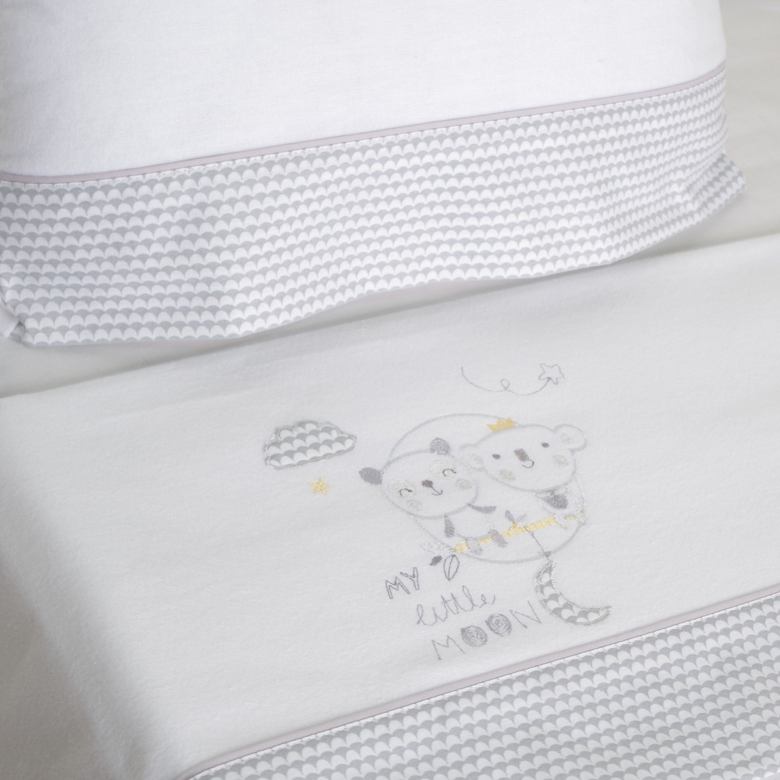 This Star crib sheet set is available in several sizes: for a crib measuring 60x120 cm, a mini crib measuring 50x80 cm, or a maxi crib measuring 70x140 cm. Which one is yours? Additionally, the set includes a top sheet, a fitted sheet, and a pillowcase.