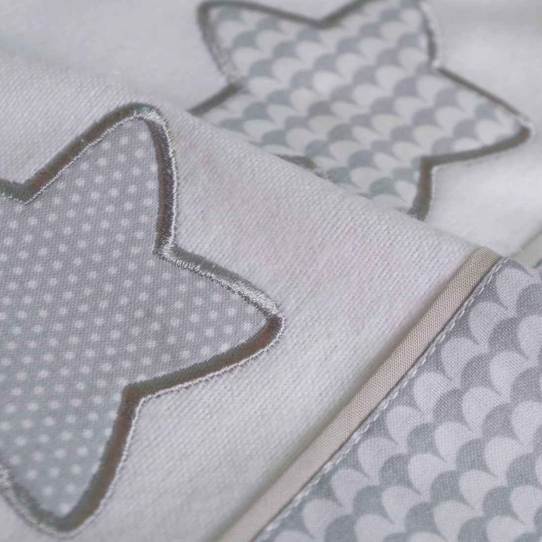 Your baby's first crib deserves the best set of sheets. Fall in love with this three-piece crib set in a rich color. white and gray and unique embroidery that will adorn your child's crib. The sheet set has a soft texture so your baby feels comfortable while sleeping. We want to take care of your baby's skin and that's why we've chosen the best materials that guarantee the greatest qualityYour baby deserves the best.