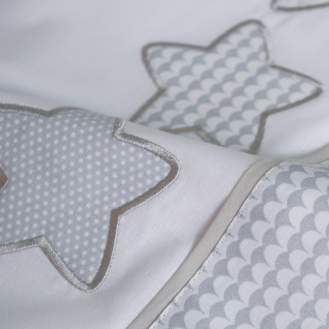 Your baby's first bed deserves the best set of sheets. Fall in love with this three-piece crib set in a rich color. white and gray and unique embroidery that will adorn your child's crib. The sheet set has a soft texture so your baby feels comfortable while sleeping. We want to take care of your baby's skin and that's why we've chosen the best materials that guarantee the greatest qualityYour baby deserves the best.