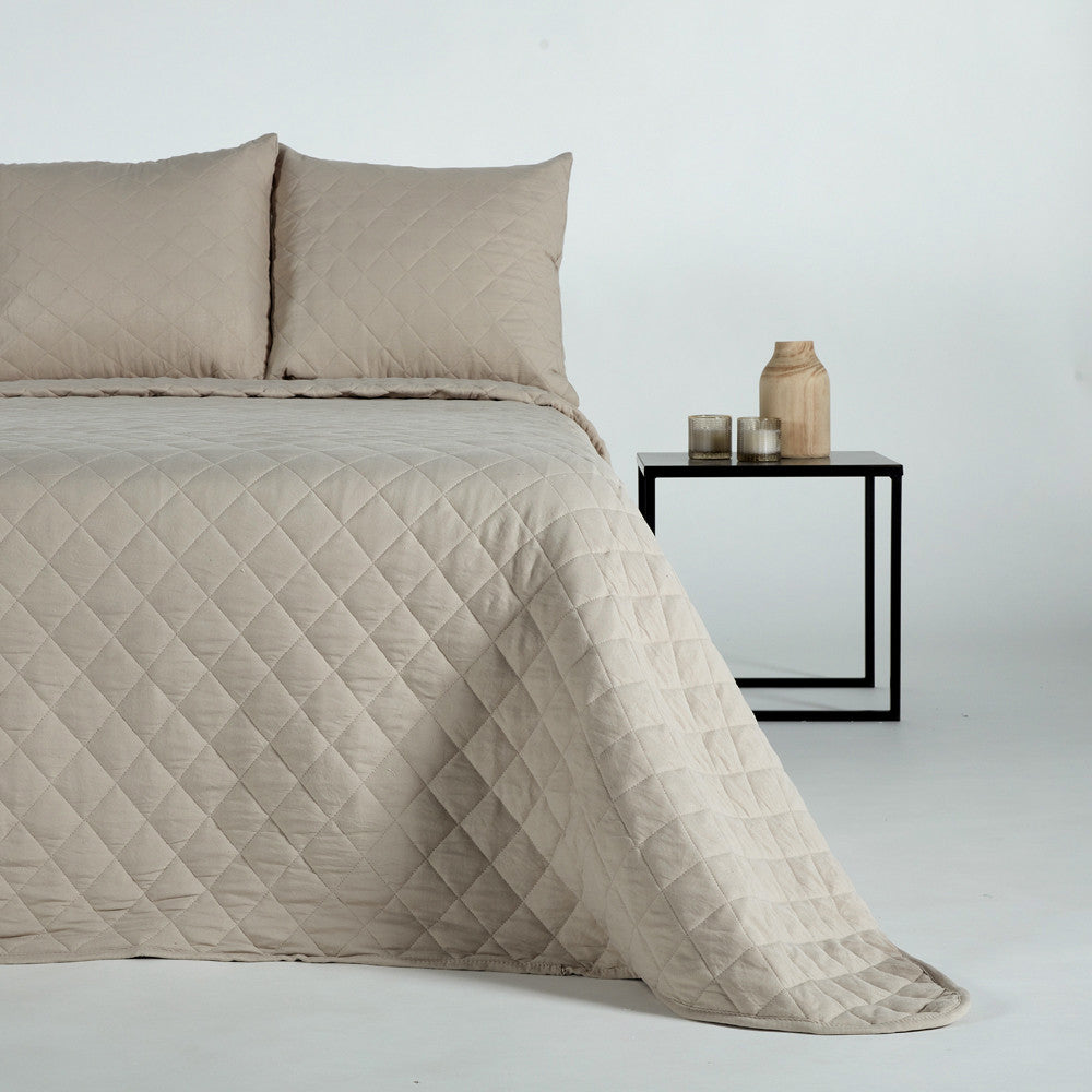 You dressed your bed in the most elegant way, but with the fresh air typical of transitional seasons. This microfiber bedspread has the perfect colors to adorn your bedroom during warm seasons, where pastel and light colors like beige are recommended.