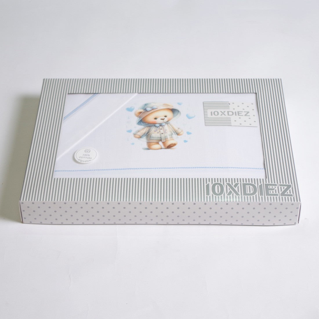 La primera cama de tu bebé se merece el mejor juego de sábanas. Enamórate de este set de tres piezas para cuna de bebé en color blanco y azul y estampado digital central que adornará la cuna de tu hijo. El juego de sábanas cuenta con una textura suave para que tu bebé se sienta a gusto mientras duerme. Queremos cuidar su piel y por eso, hemos apostado por los mejores materiales que te garantizan la mayor calidad. Tu bebé se merece lo mejor.