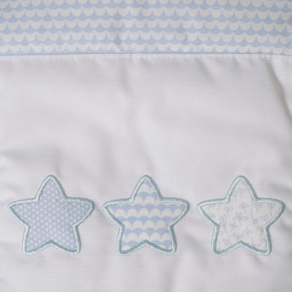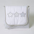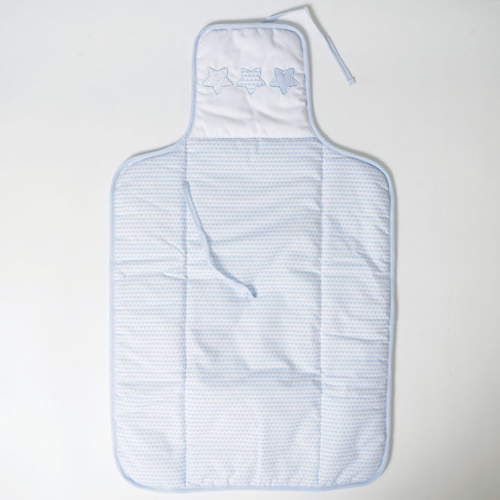 Foldable changing mat with printed and embroidered fabric on the flap, padded and with a PVC backing that makes it waterproof.