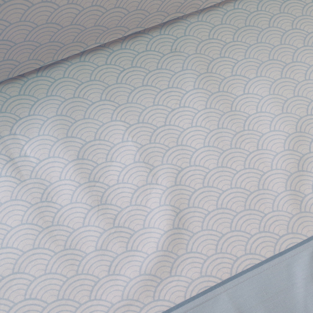 L'ensemble se compose d'un plan de travail, d'un drap de dessous adaptable (pour matelas jusqu'à 28 cm de haut et 190/200 cm de long) et d'une taie d'oreiller à deux ouvertures.
