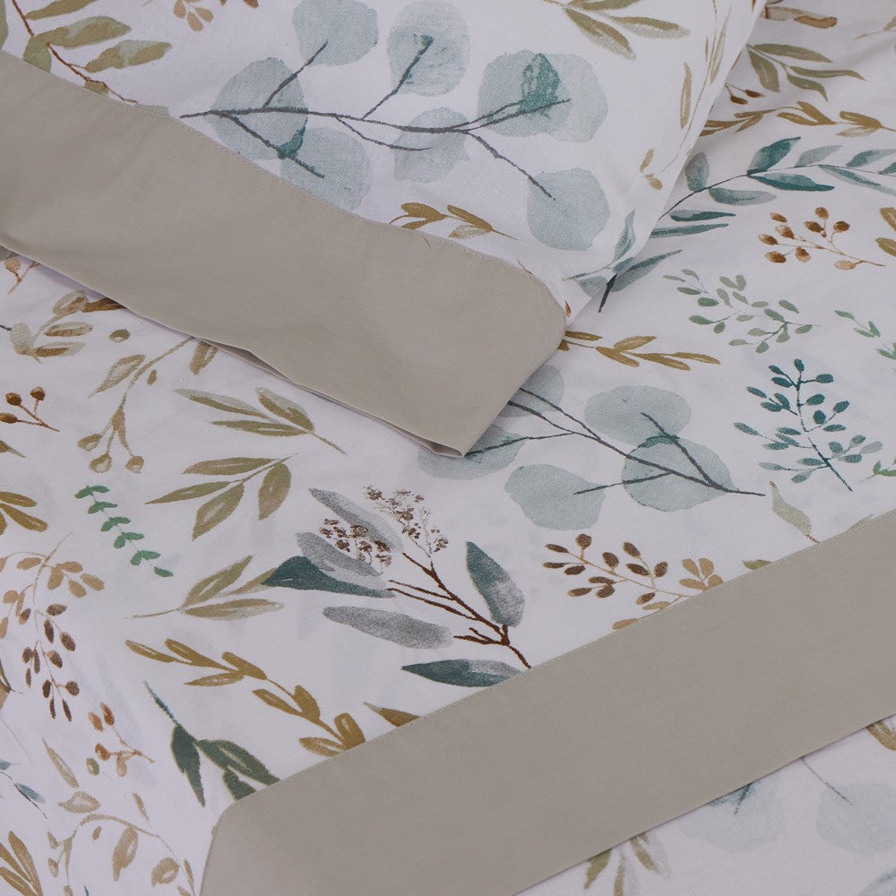 A complete sheet set to fully dress your bed and give your bedroom a completely fresh look. With a solid background and prints in different shades, this sheet set will perfectly match rooms in both warm colors and darker or stronger tones. It is available in various colors, so you can find the one that best fits your space and preferences.