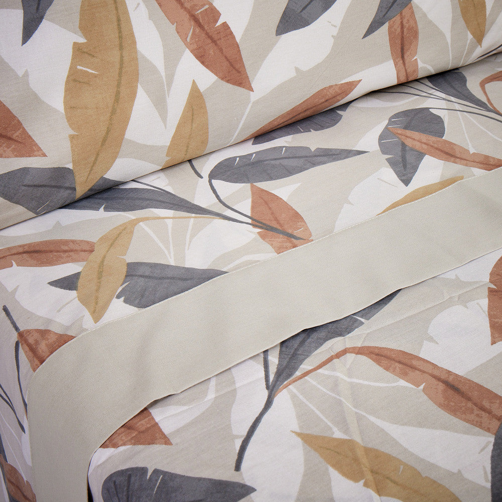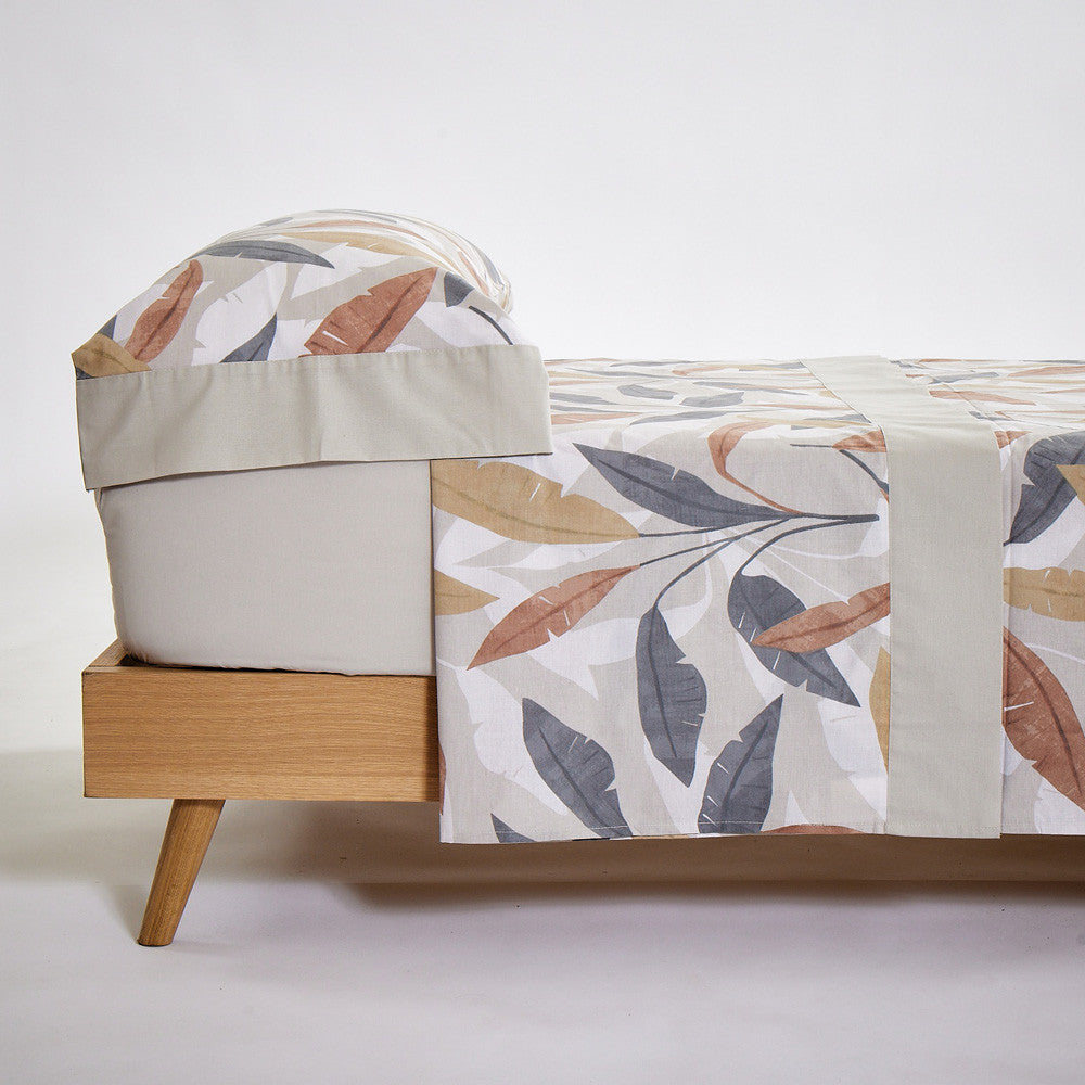 A complete sheet set to fully dress your bed and give your bedroom a completely fresh look. With a solid background and prints in different shades, this sheet set will perfectly complement rooms with both warm colors and darker or bolder tones. It is available in various colors, so you can find the one that best fits your space and taste.