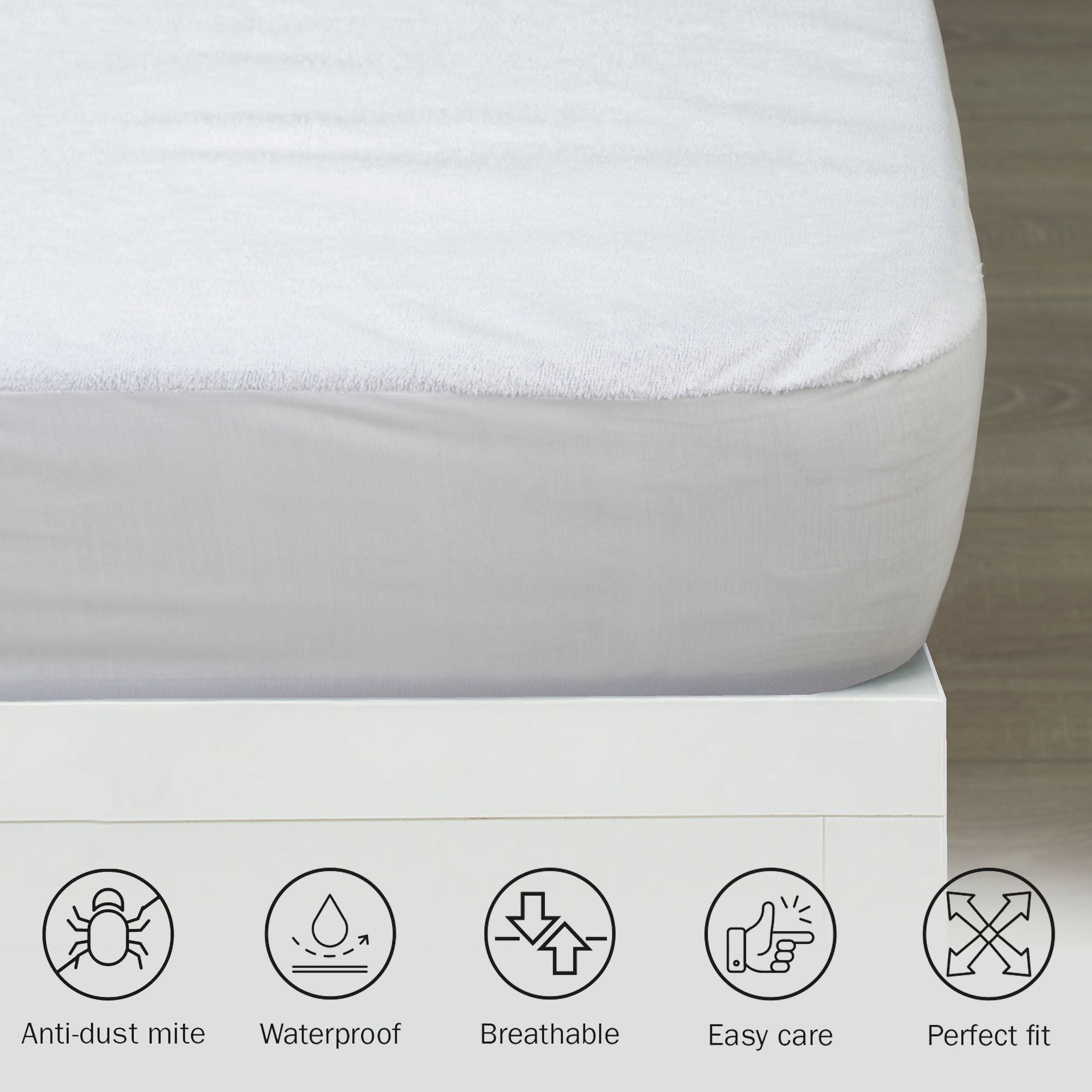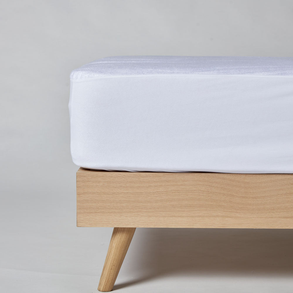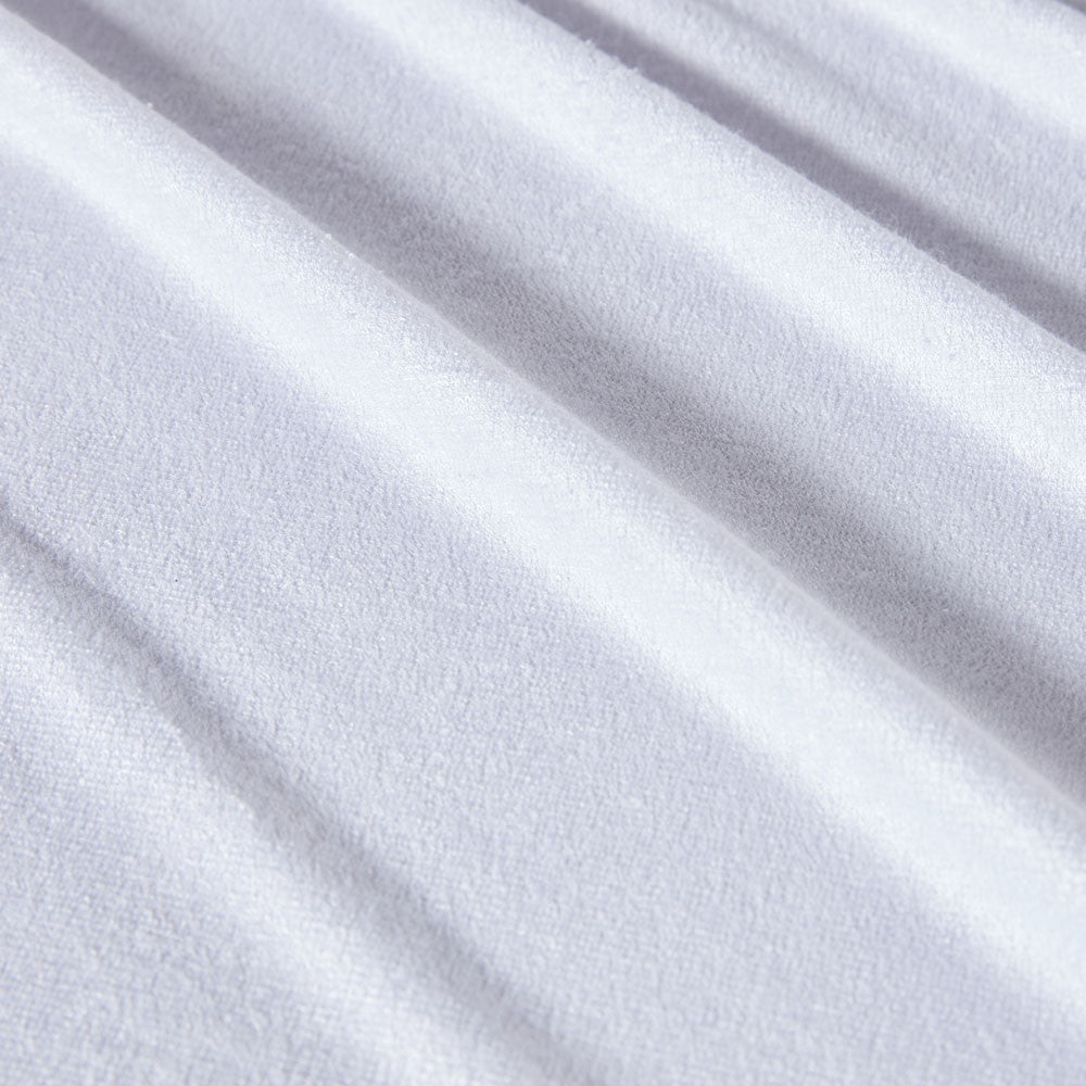 Anti-dust mite mattress protector made of terry knit fabric that breathes and regulates temperature, keeping warmth in winter and freshness in summer.