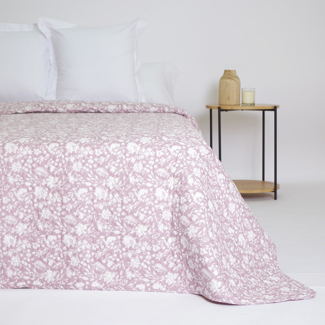 Transitional quilt with a thin filling of batting, printed on both sides with a contrasting reverse.
