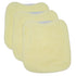 Pack of 3 yellow terry cloth bibs, with a plastic backing and elastic around the neck.