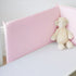 Bumper pad to place inside the crib to protect the baby's head. It has fabric strips to attach it to the crib railing and is easy to wash in the washing machine.