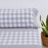 The set includes a top sheet, a fitted sheet (for mattresses up to 30cm high and 190/200cm long), and a pillowcase with two openings.