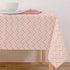 Printed tablecloth, treated with Teflon creating a protective barrier that repels liquids and prevents stains from forming.
