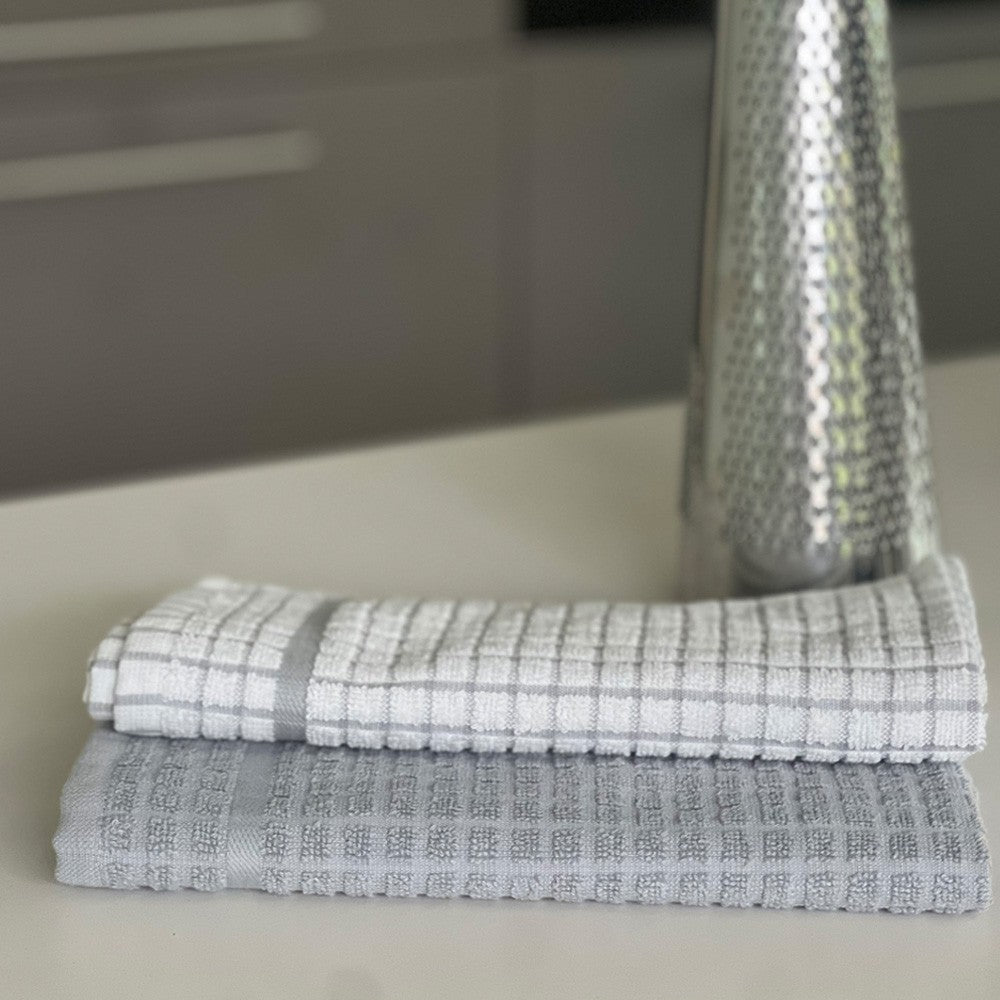 Un torchon de cuisine en éponge avec jacquard à carreaux.