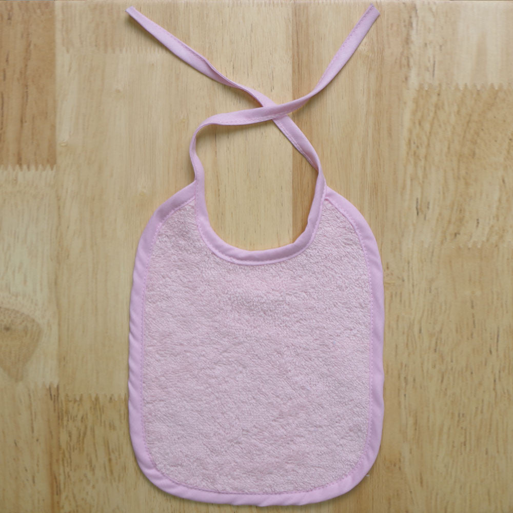 Bavoir en éponge de couleur unie avec un biais ton sur ton, avec des liens à nouer derrière le cou.