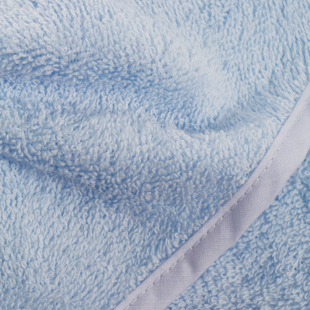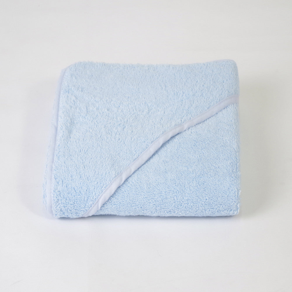 Serviette de bain pour bébé en éponge lisse avec un biais assorti tout autour.