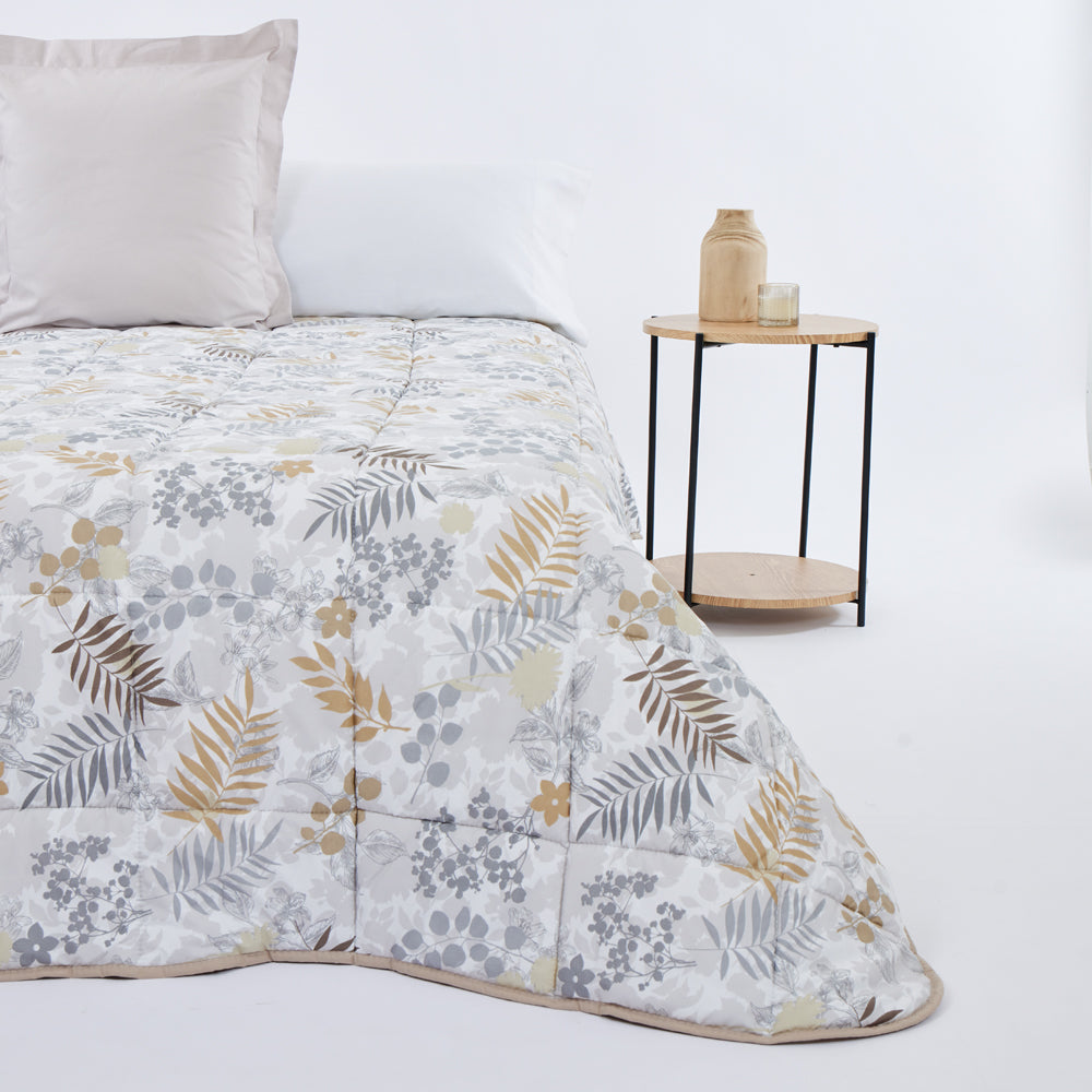 Couette imprimée avec revers uni en tissu microfibre.