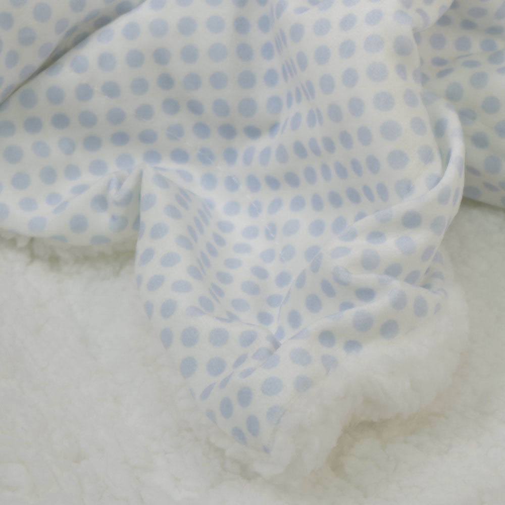 Couverture de 75 cm de large x 75 cm de long avec un motif de pois.