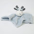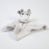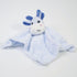 Petite couverture de 30 centimètres de large x 30 centimètres de long avec une petite tête en peluche.