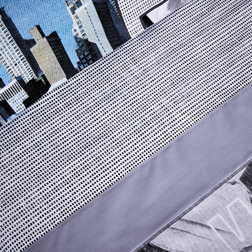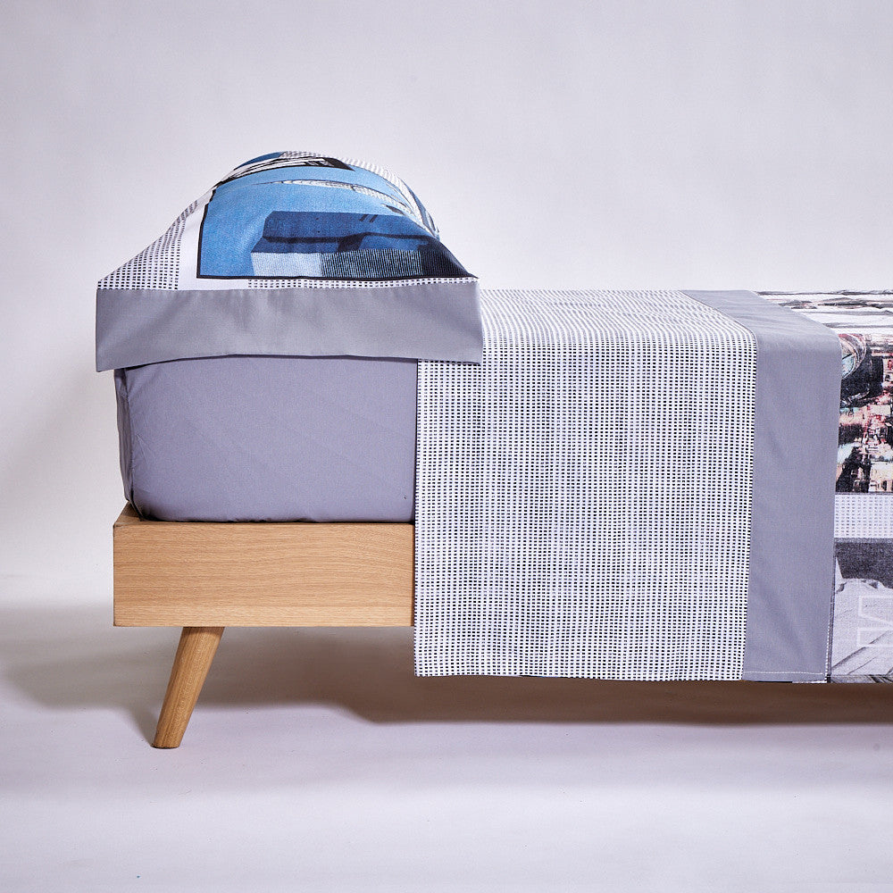 L'ensemble se compose d'un dessus, d'un drap de dessous adaptable (pour matelas jusqu'à 28 cm de hauteur et 190/200 cm de longueur) et d'une taie d'oreiller à deux ouvertures.