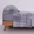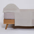 L'ensemble se compose d'un drap de dessus, d'un drap-housse uni (avec soufflet pour matelas jusqu'à 30 cm de hauteur) et d'une taie d'oreiller à deux ouvertures.