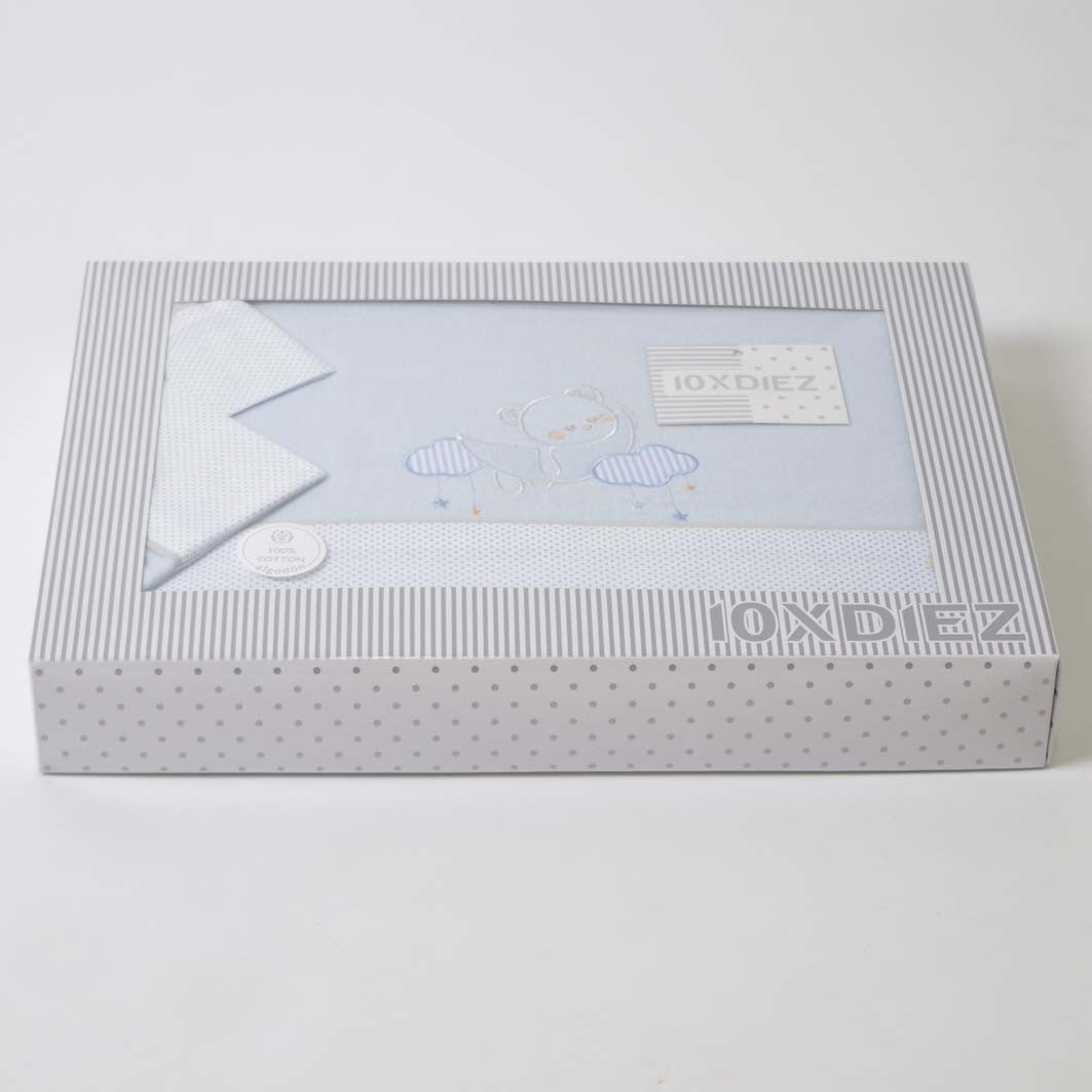 Ensemble de draps pour berceau en flanelle Moon Bear 386 Blanc/Bleu