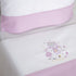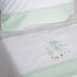 Ensemble de trois pièces pour lit de bébé avec dessin brodé, disponible en plusieurs couleurs.