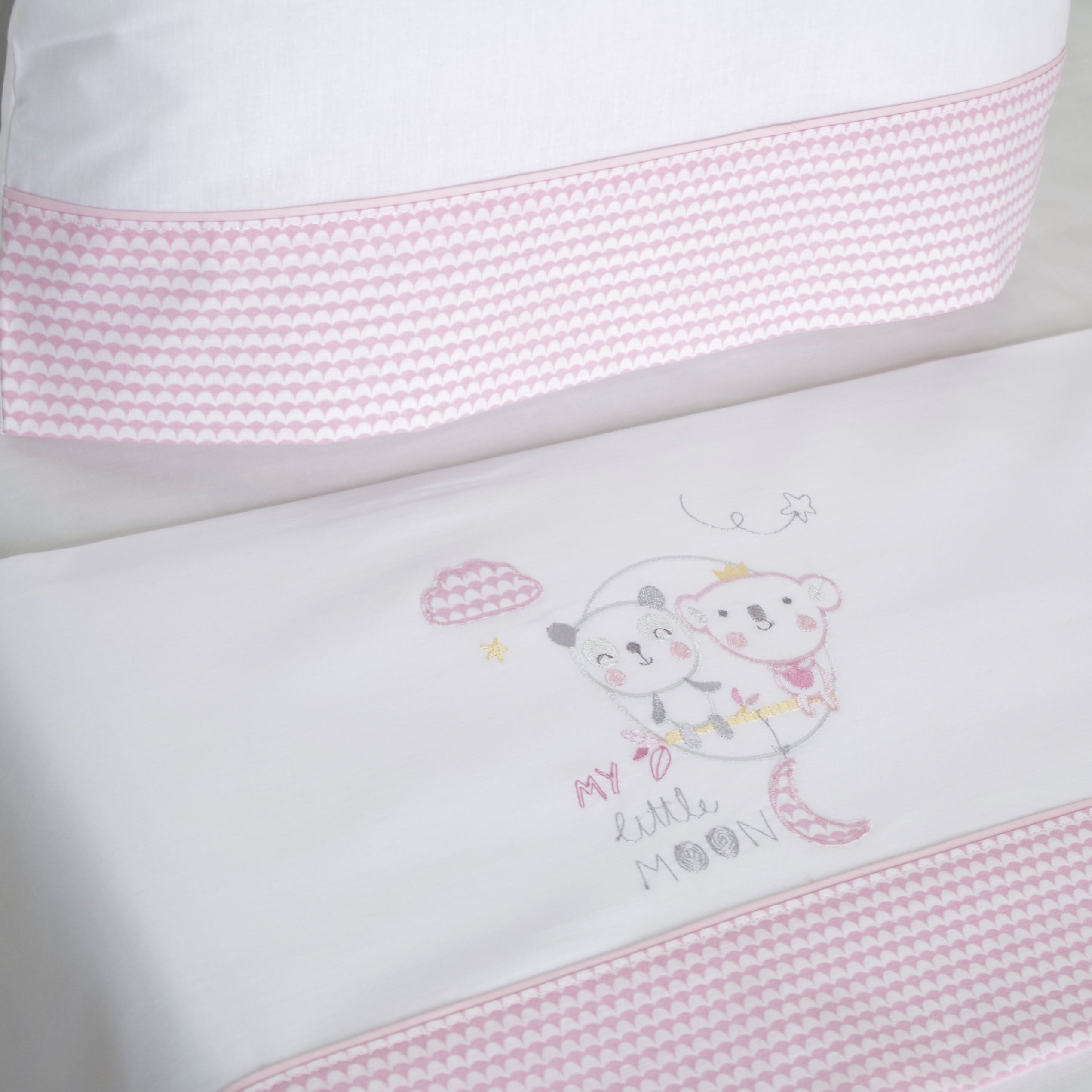 Ensemble de draps pour lit de bébé Little Moon blanc/rose