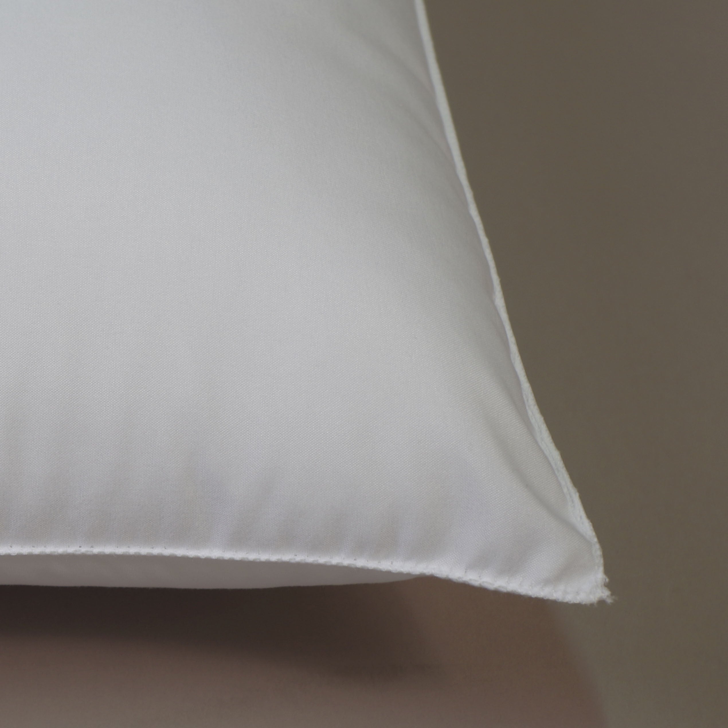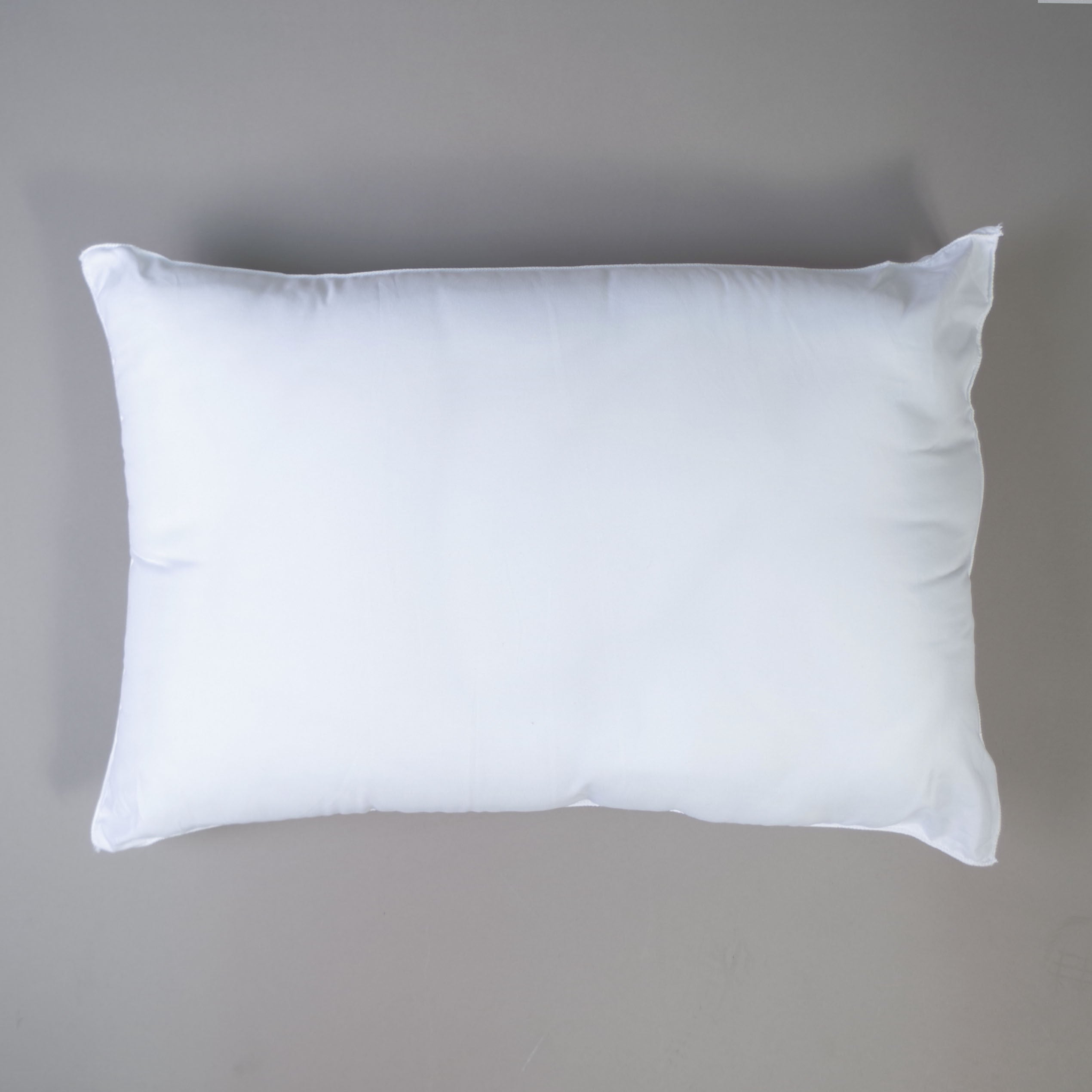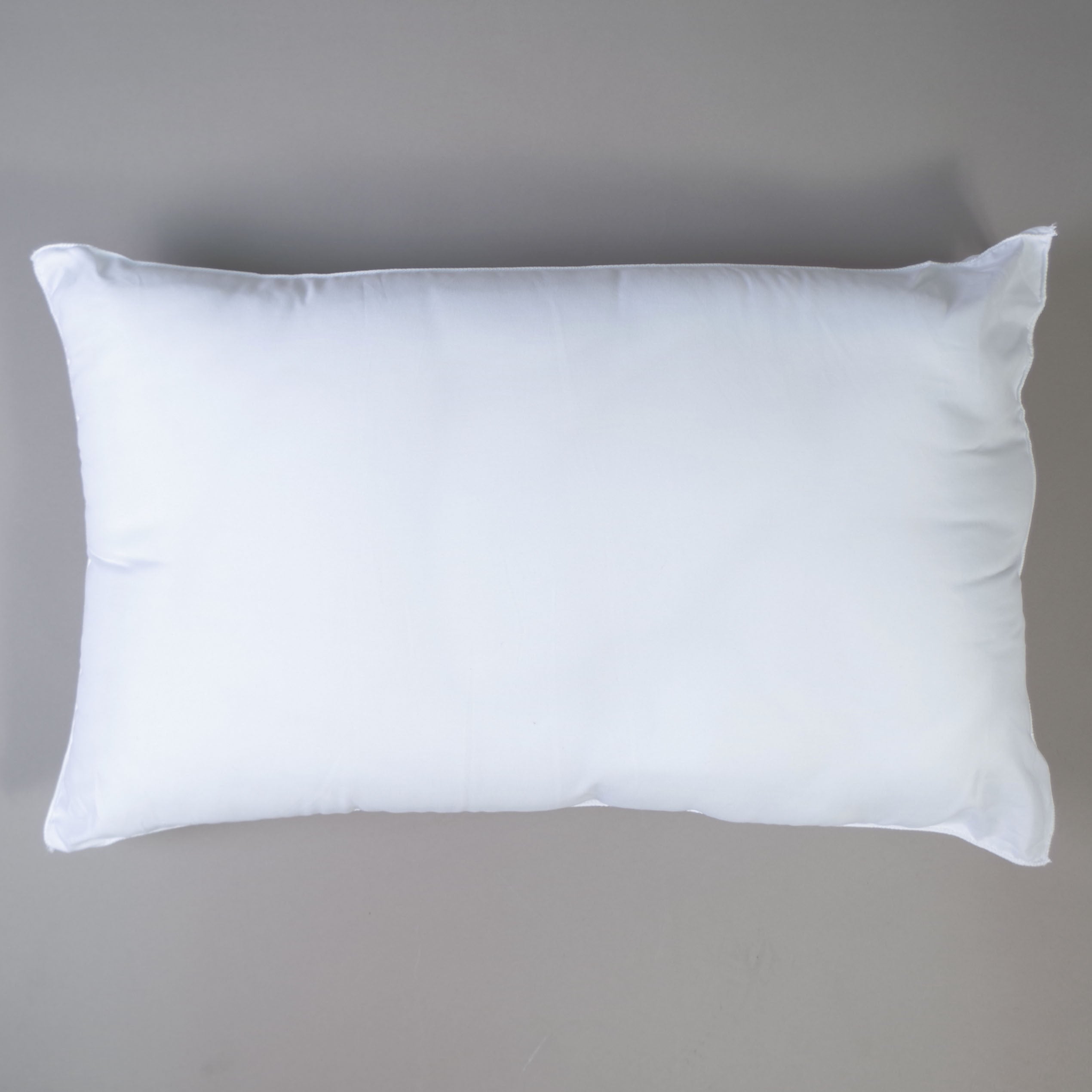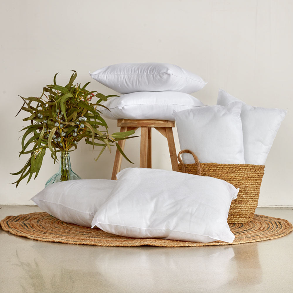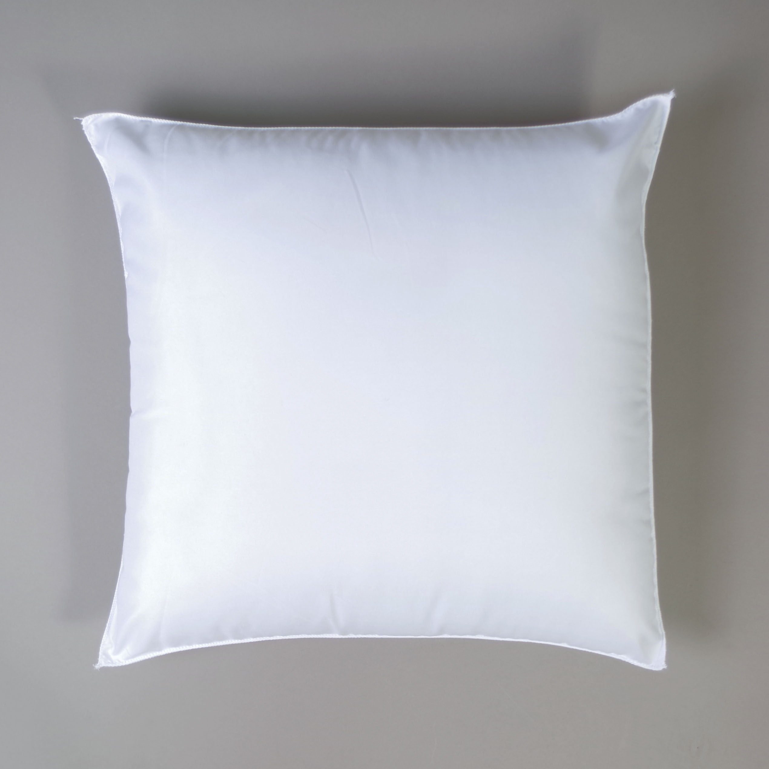 Remplissage de coussin en fibre avec housse fermée en tissu microfibre de couleur blanche.