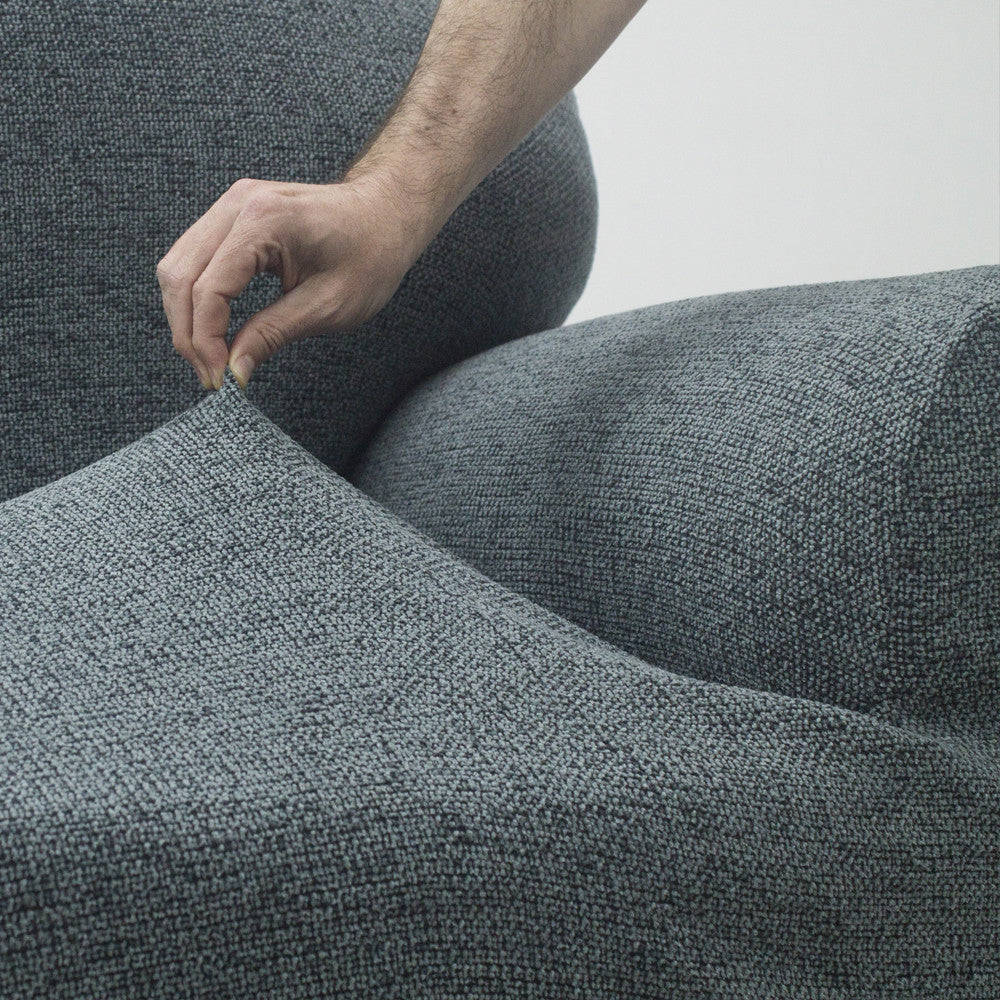 Housse pour canapé 2 places avec accoudoirs en tissu chenille avec une grande élasticité.