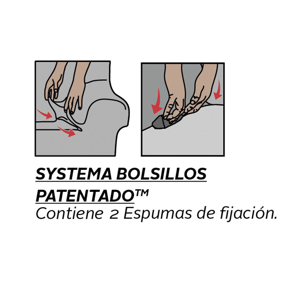 Système de placement facile pour l'installer sans démonter les coussins, avec 2 mousses de maintien.