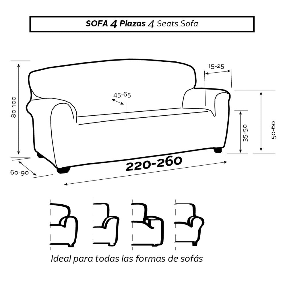 Housse de canapé 4 places avec accoudoirs en tissu chenille avec une grande élasticité.