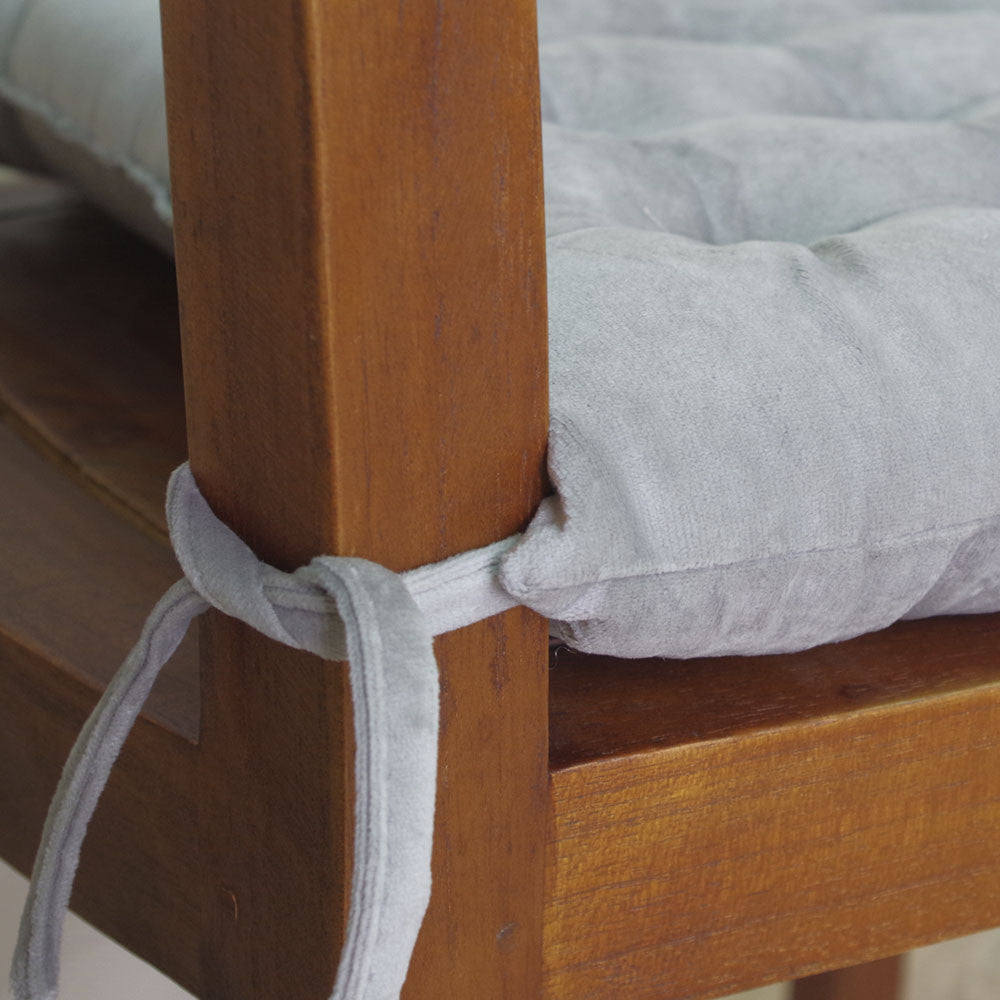 Sa construction en velours 100% polyester garantit une grande durabilité et son garnissage en fibres vous apporte le confort que vous recherchez. De plus, ils sont dotés d'attaches dans les coins qui permettent de les attacher aux chaises.