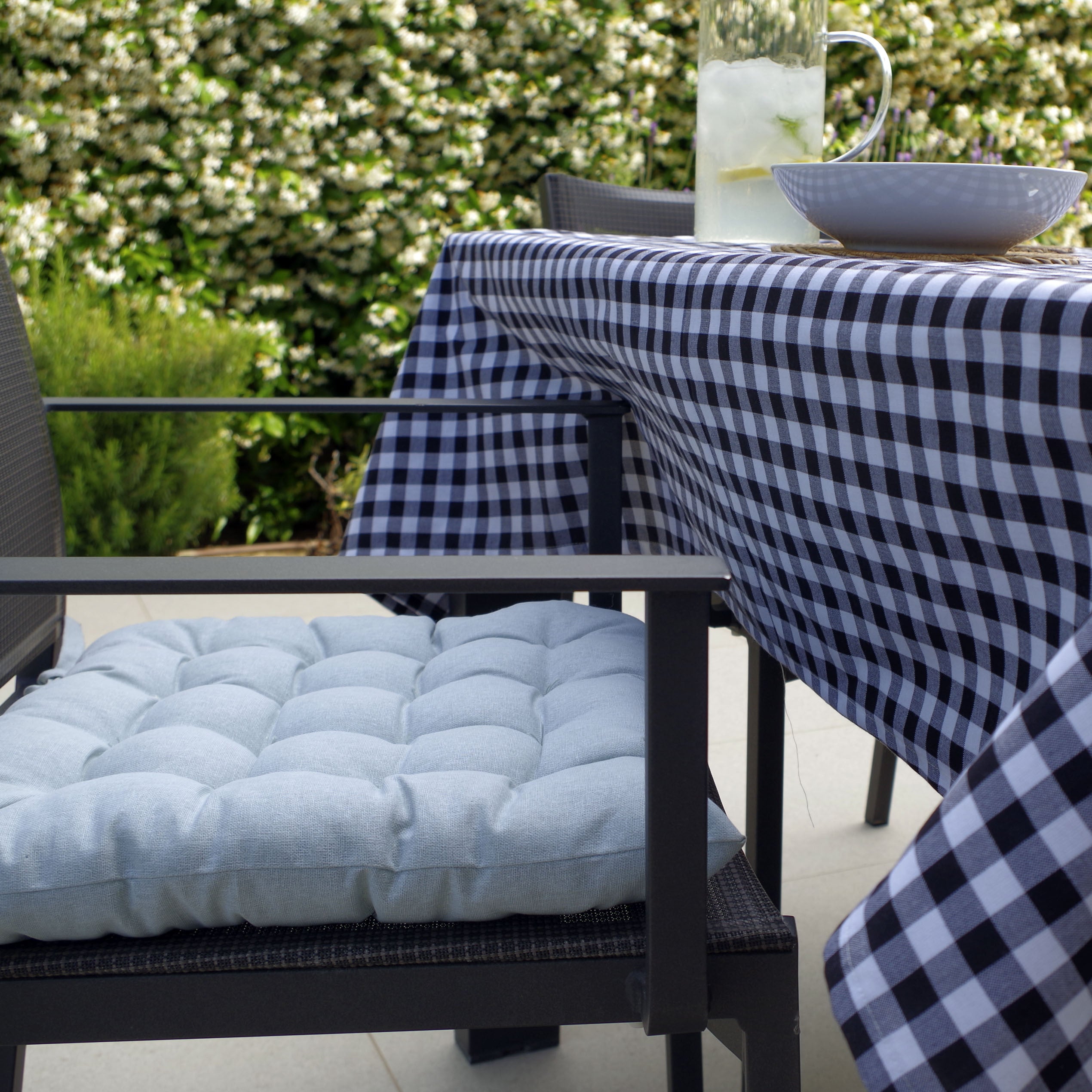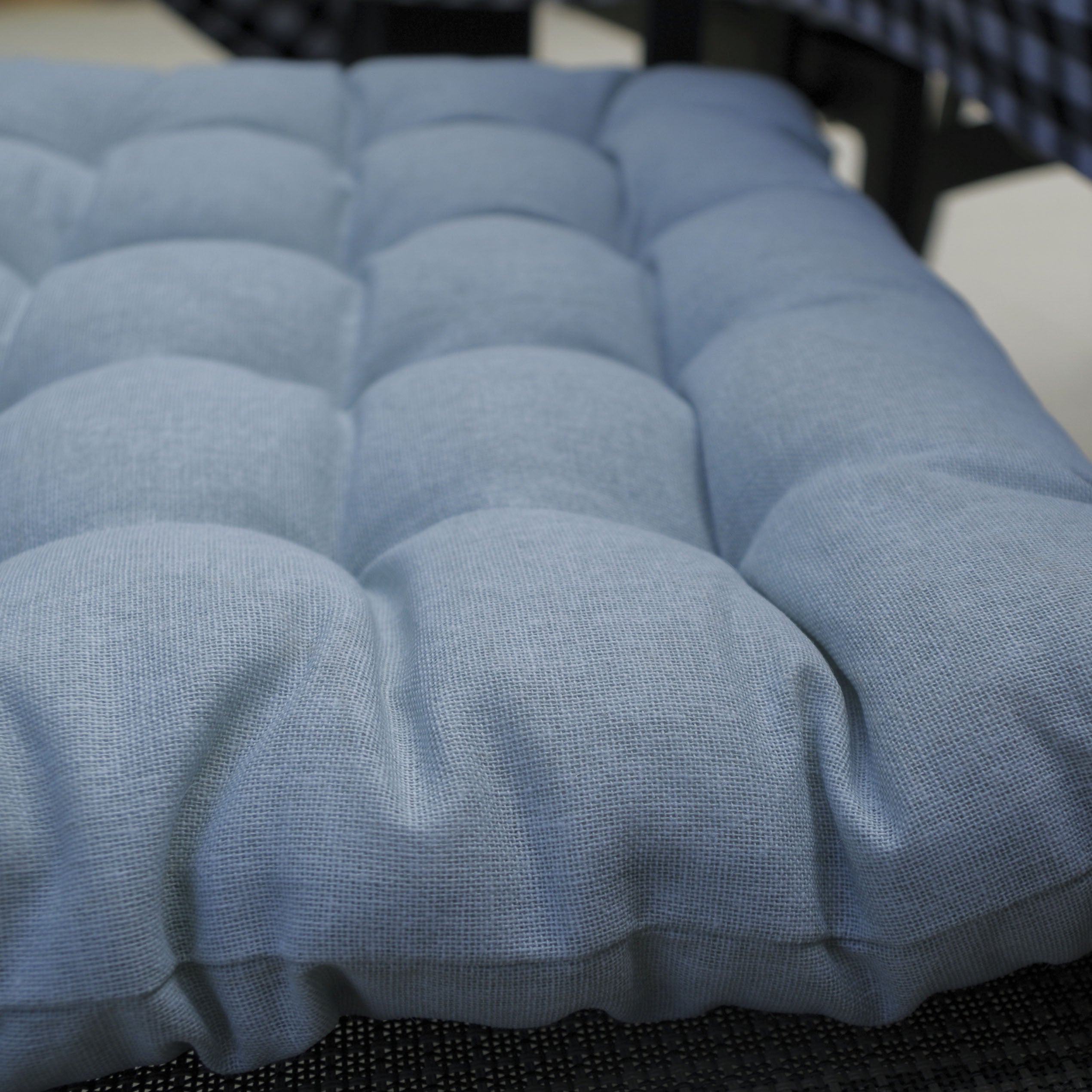 Sa construction 100% coton garantit une grande durabilité et son rembourrage en mousse apporte le confort que vous recherchez. De plus, ils ont des attaches dans les coins qui vous permettent de les attacher aux chaises.