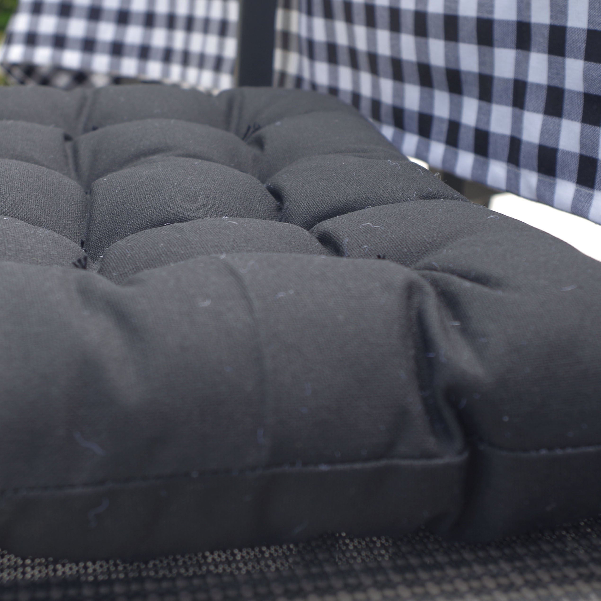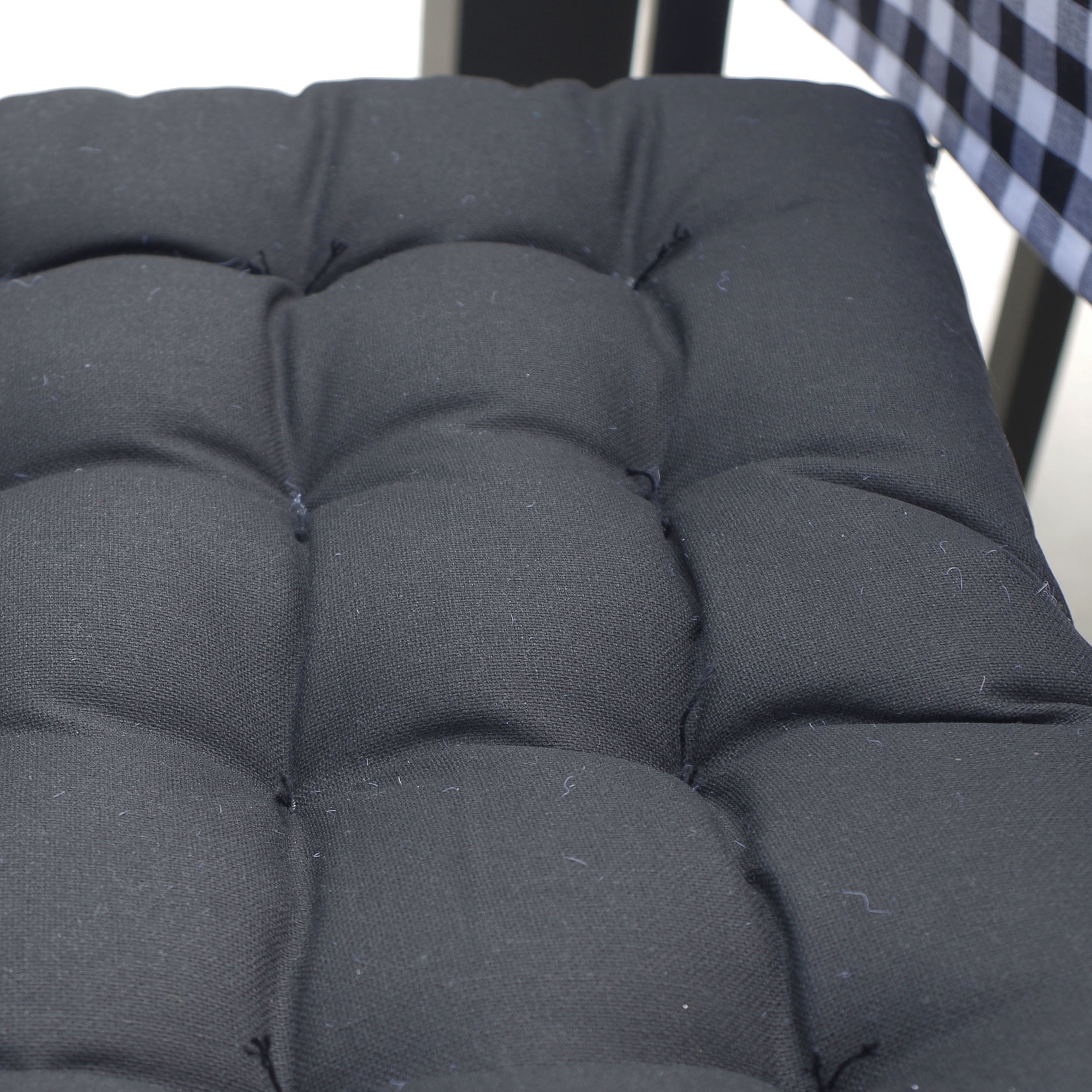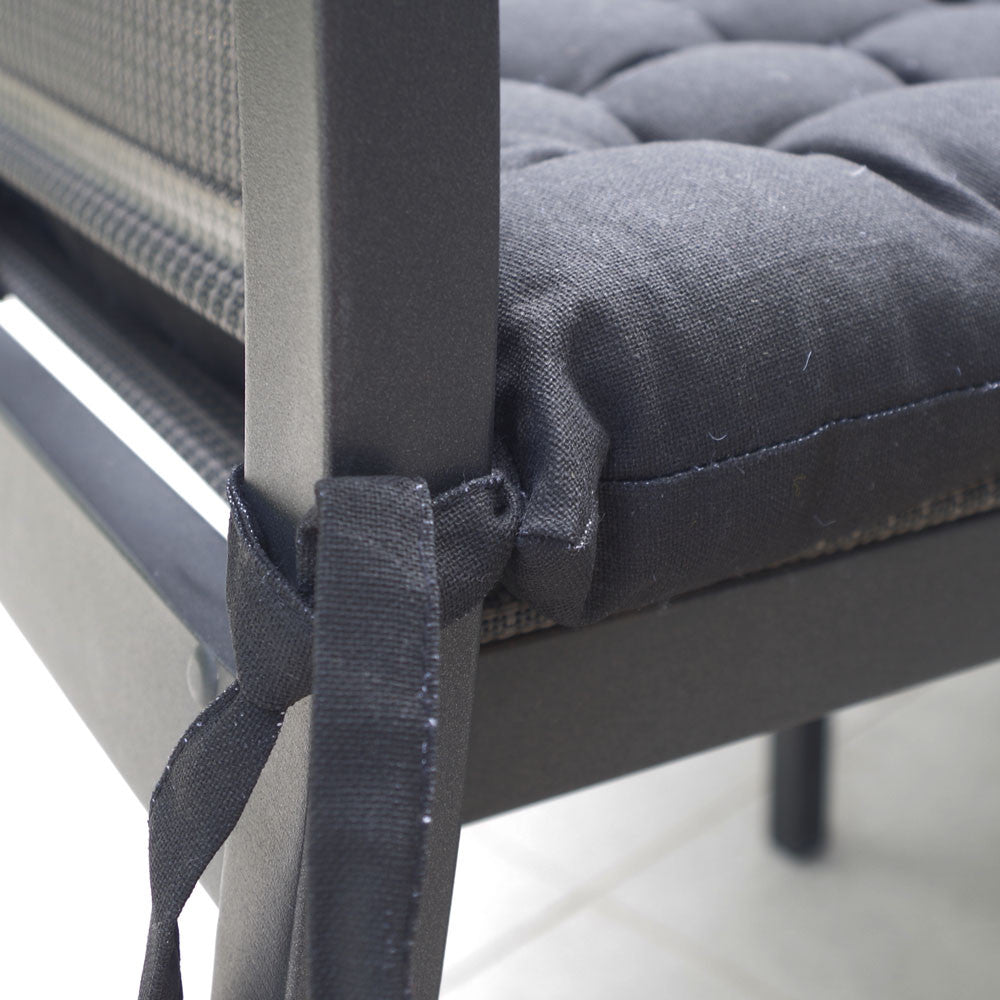 Sa construction 100% coton garantit une grande durabilité et son rembourrage en mousse apporte le confort que vous recherchez. De plus, ils ont des attaches dans les coins qui vous permettent de les attacher aux chaises.