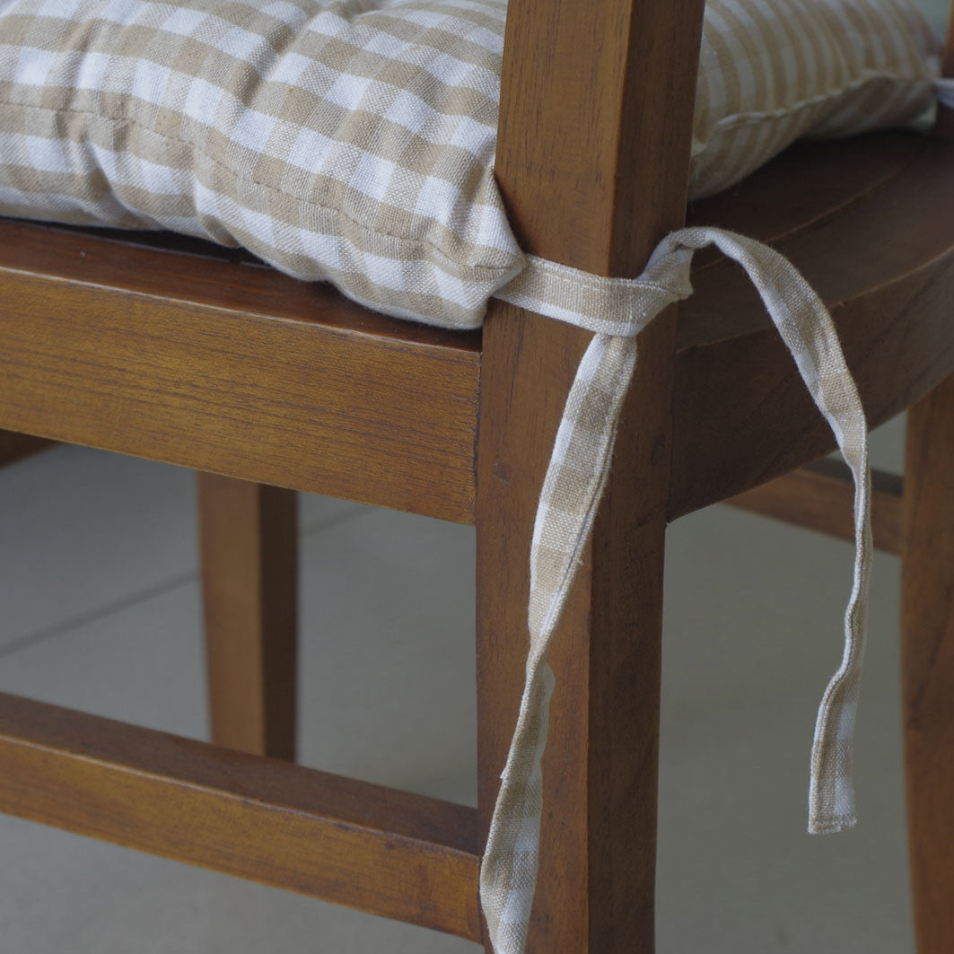 Sa construction 100% coton garantit une grande durabilité et son garnissage en fibres vous apporte le confort que vous recherchez. De plus, ils sont dotés d'attaches dans les coins qui permettent de les attacher aux chaises.