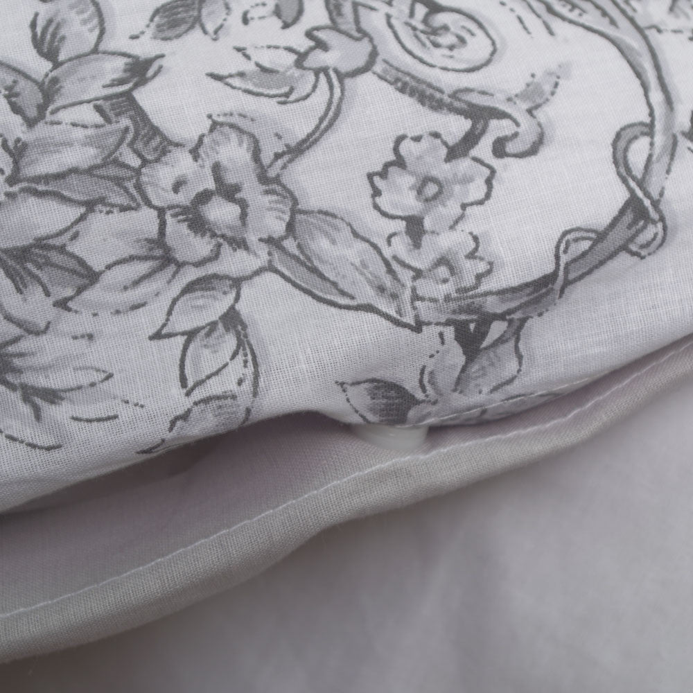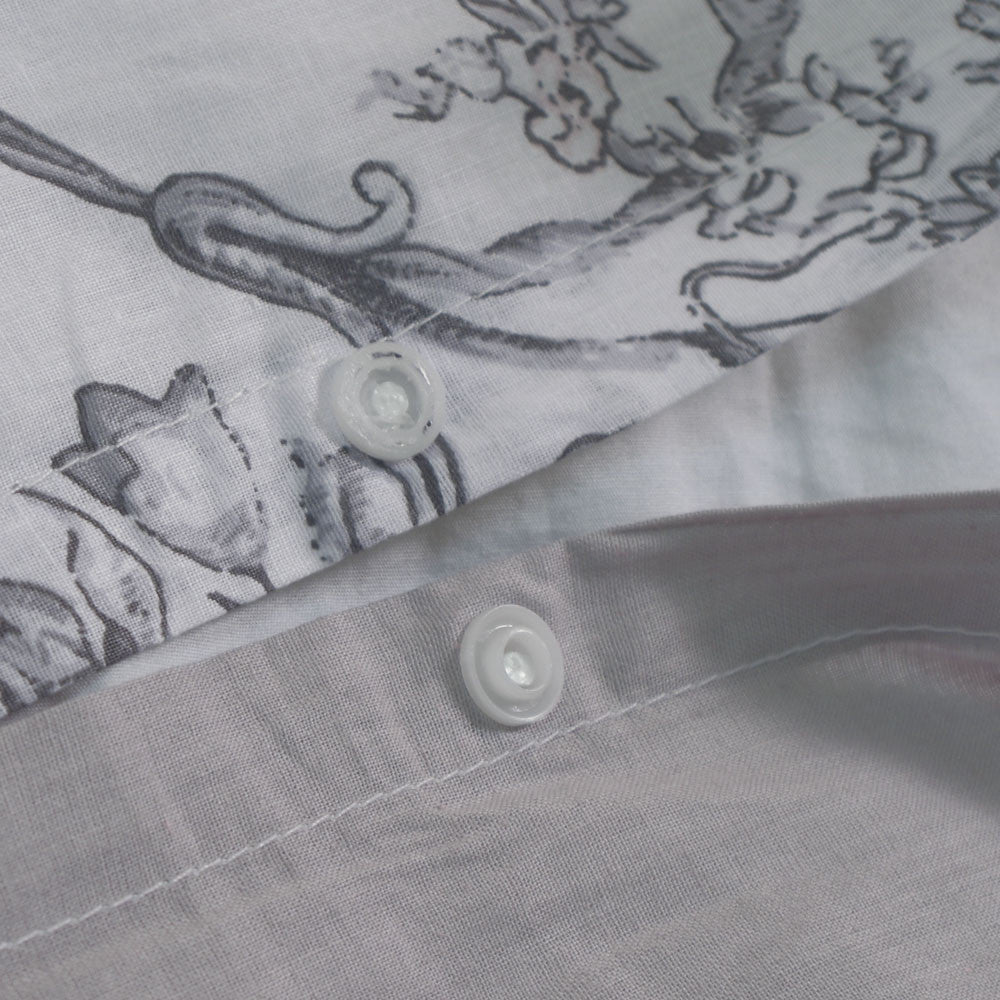 Elle comporte une ouverture en bas pour faciliter le placement du duvet qui se ferme avec des boutons-pression.