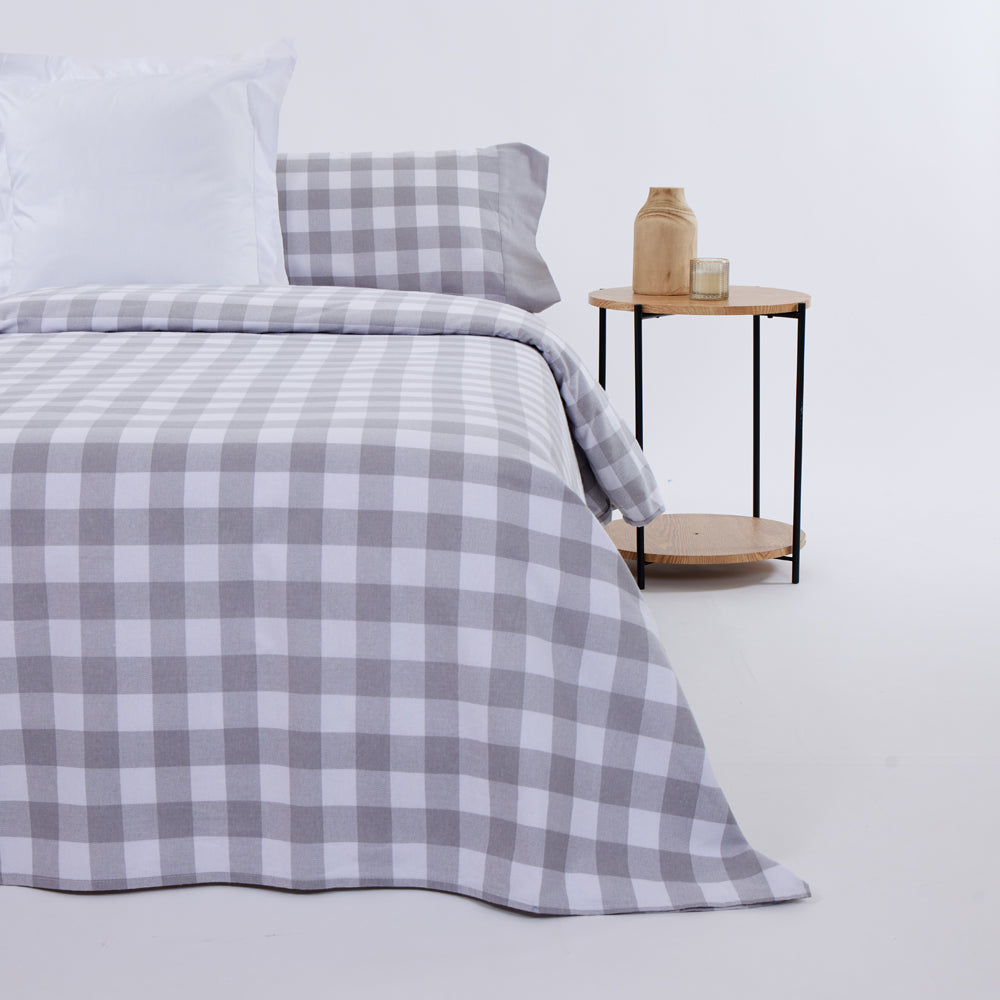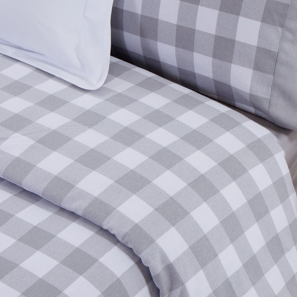 Duo de housses de couette en flanelle à imprimé carreaux.
