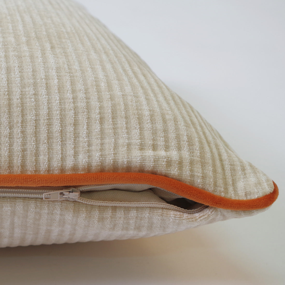 Housse de coussin en coraline texturée de couleur unie. Avec fermeture éclair sur le côté.
