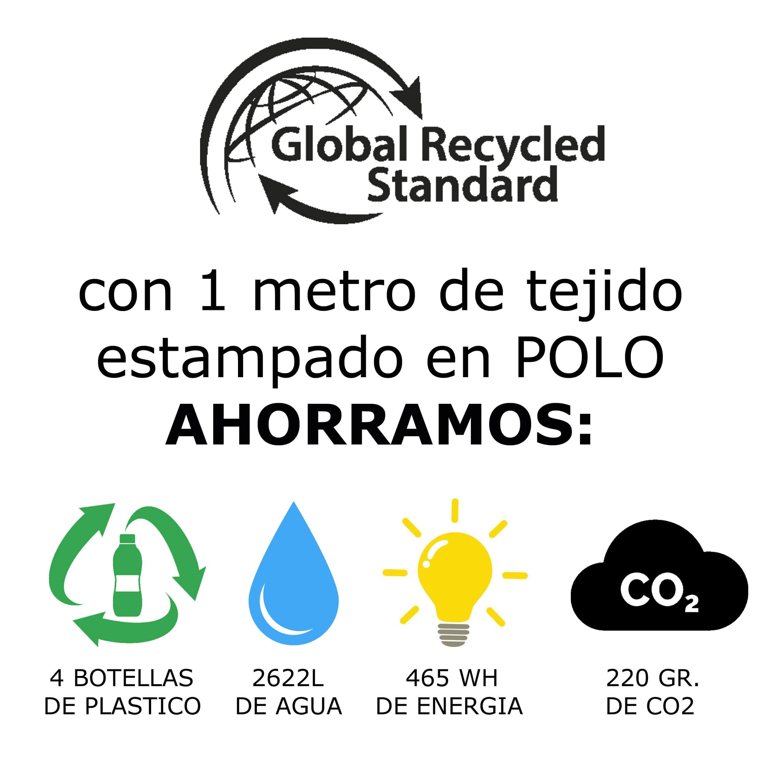 Imprimée en POLO, avec certificat Global Recycled Standard (100%) qui vérifie des pratiques sociales, environnementales et chimiques responsables dans sa production.