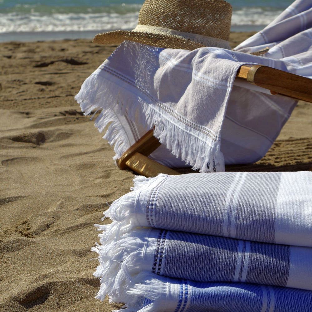 Ce PAREO DE PLAGE FOUTAH BALI à rayures est idéal pour l'emporter avec vous quand et où vous voulez. Le tissu qui le compose en fait un vêtement léger et idéal à transporter dans votre sac à dos et aller à la plage ou à la piscine.