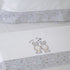 Ensemble de trois pièces pour lit de bébé avec motif brodé, disponible en plusieurs couleurs.