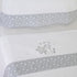 Ensemble de trois pièces pour lit de bébé avec motif brodé, disponible en plusieurs couleurs.
