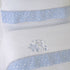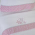 Ensemble de trois pièces pour lit de bébé en coraline avec dessin brodé et finition en popeline imprimée d'étoiles, disponible en plusieurs couleurs.