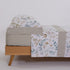 L'ensemble se compose d'un drap de dessus, d'un drap de dessous adaptable et d'une taie d'oreiller à deux ouvertures.