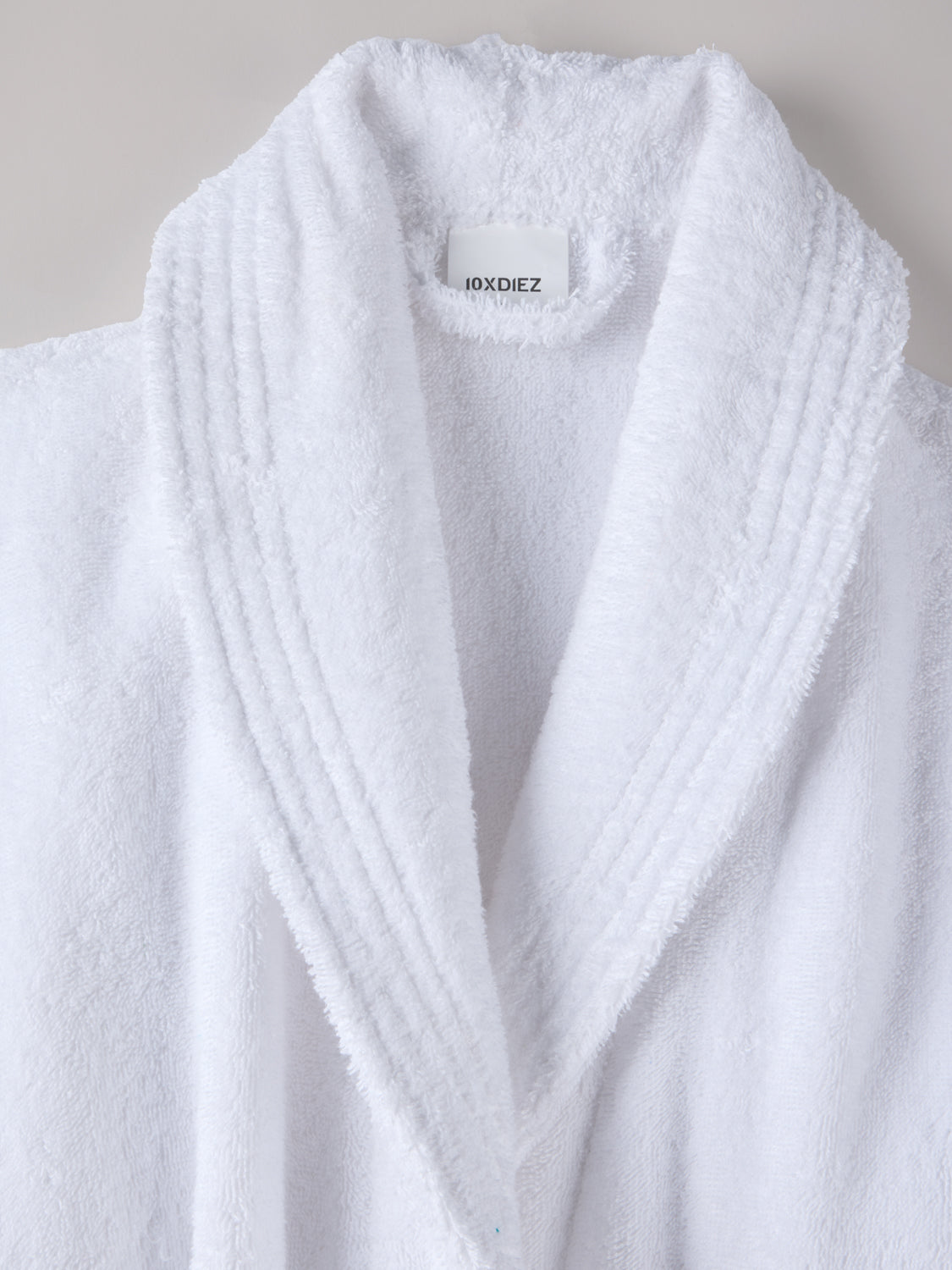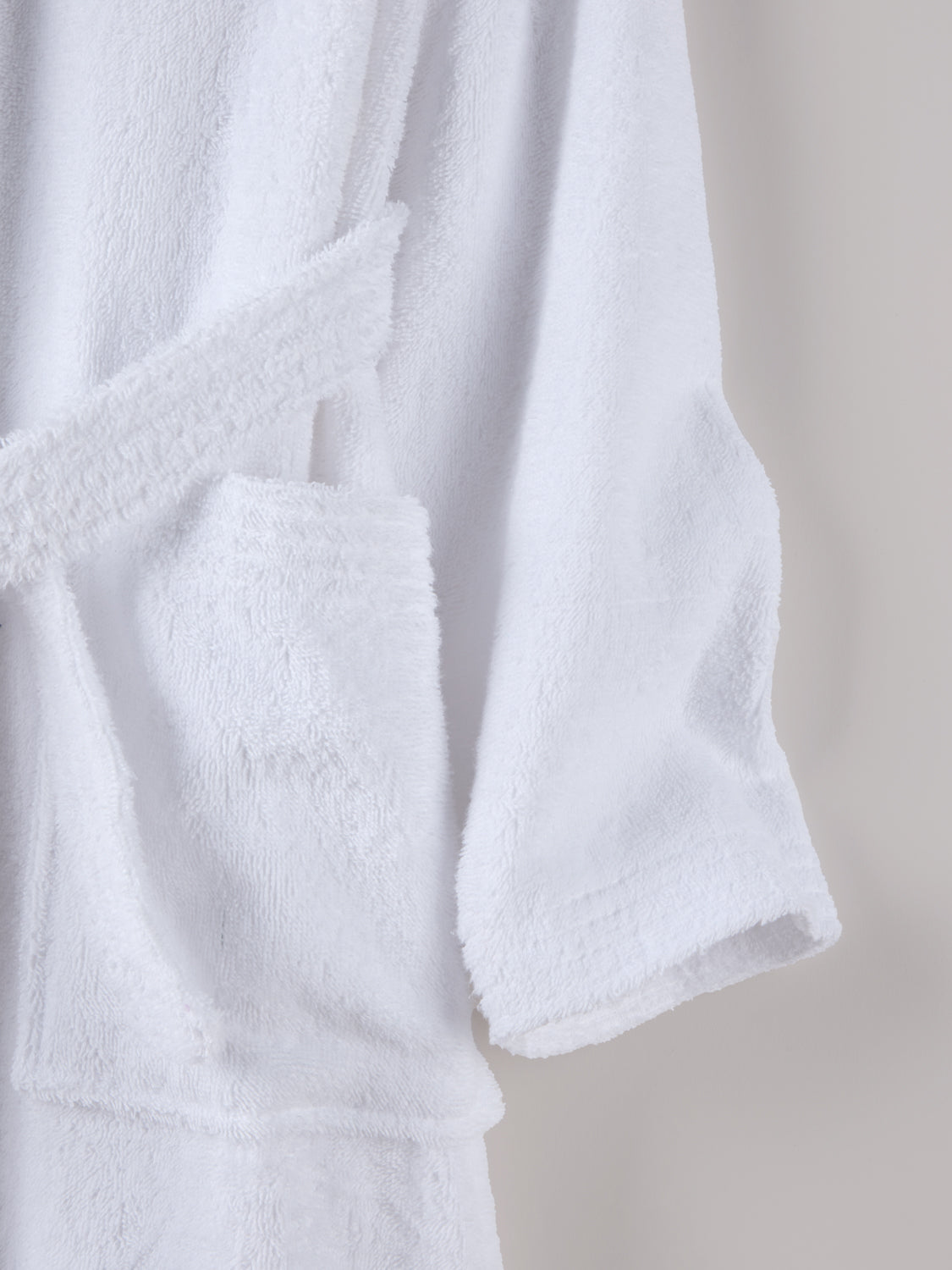 Le peignoir classique en éponge américaine blanche unie rendra votre douche encore plus réconfortante. Un vêtement moelleux des plus doux grâce à sa composition 100% coton. Le poids du peignoir est de 450 gr/m2, ce qui vous assurera un séchage rapide et absorbant. Grâce à ce vêtement, vous pourrez profiter des douches les meilleures et les plus agréables.