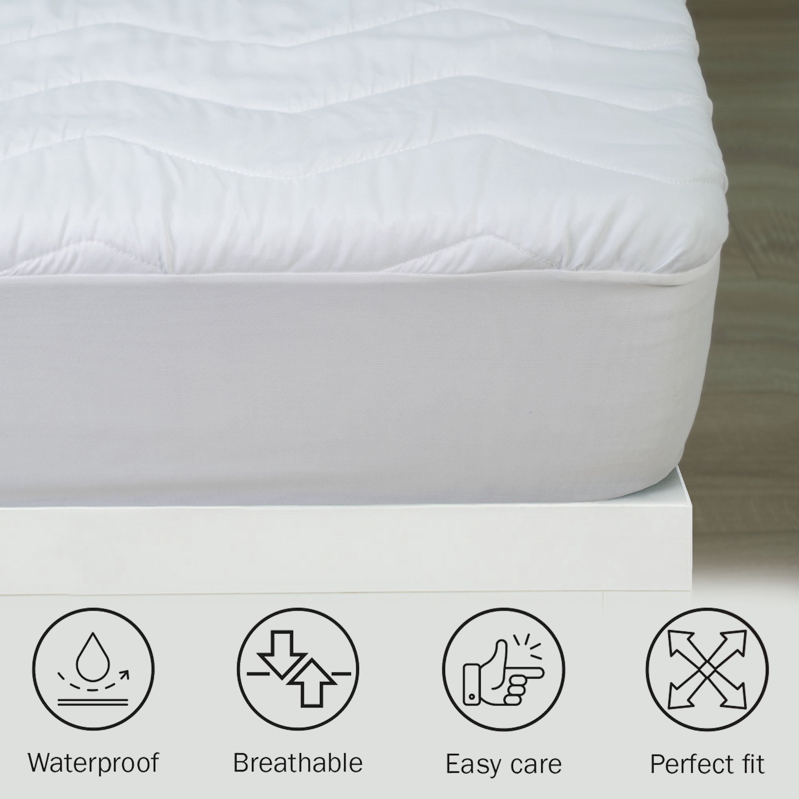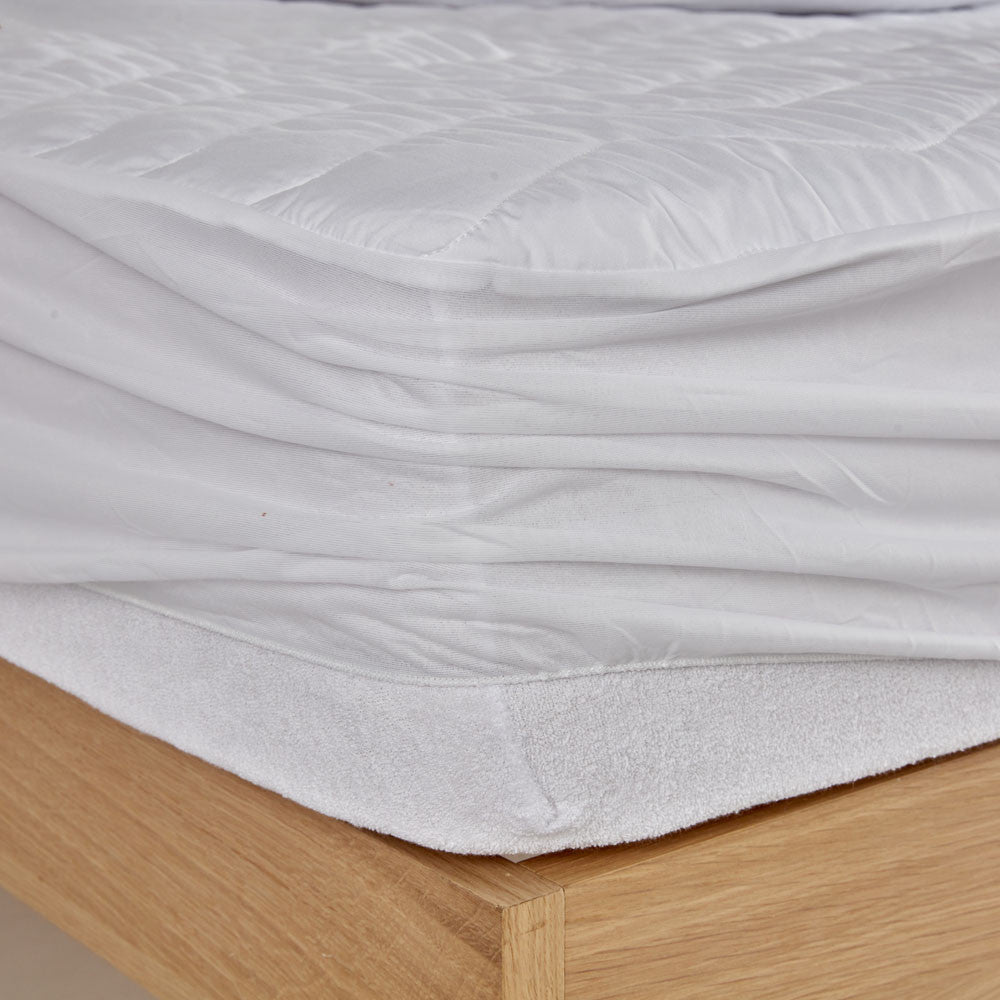 Protège-matelas avec tissu rembourré et revers en PU (polyuréthane).