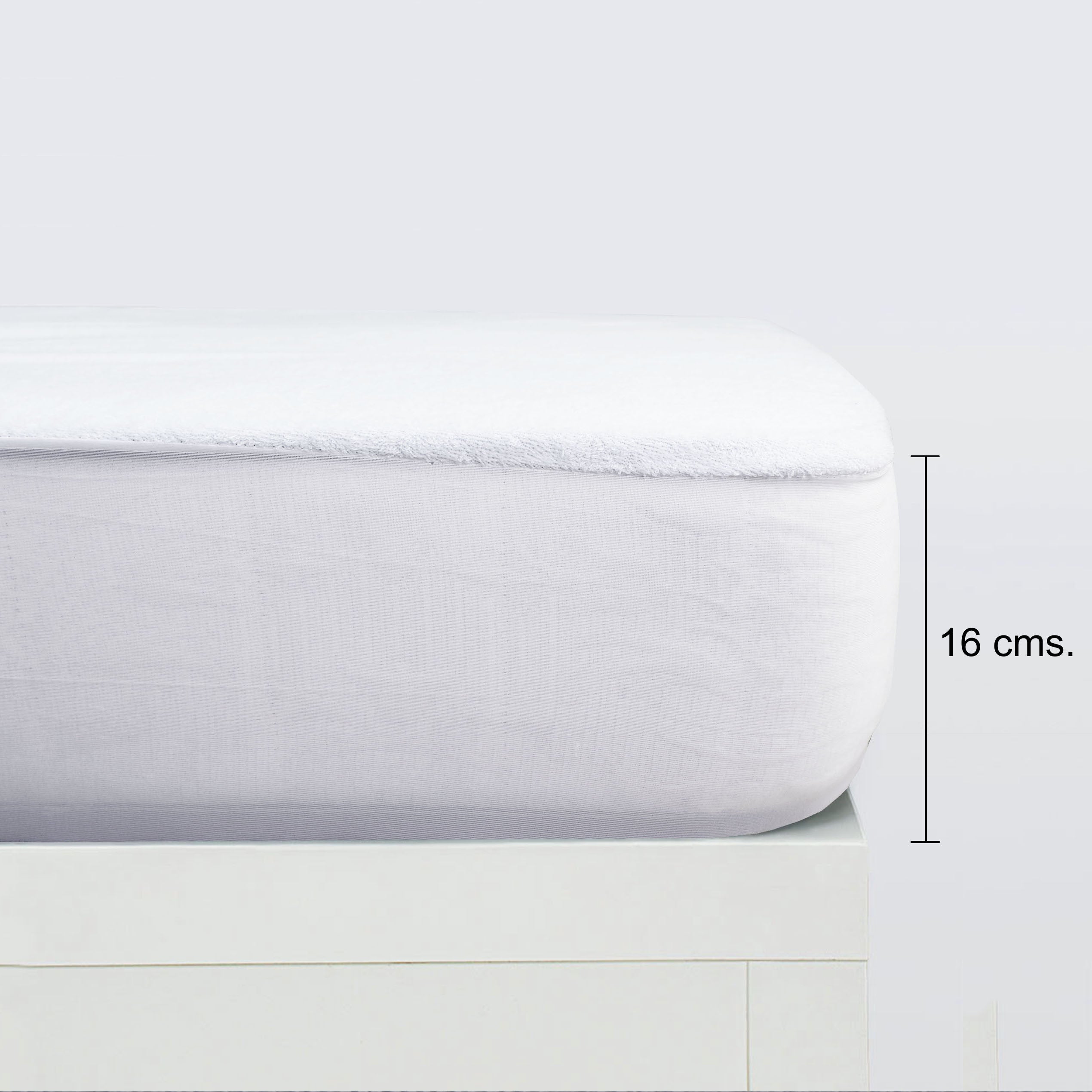 Protecteur de lit de plusieurs dimensions. Tissu en éponge de coton et revers en polyuréthane. Il est imperméable et respirant. S'adapte au matelas grâce à un élastique ajustable. Pour des matelas d'une hauteur maximale de 16 cm.