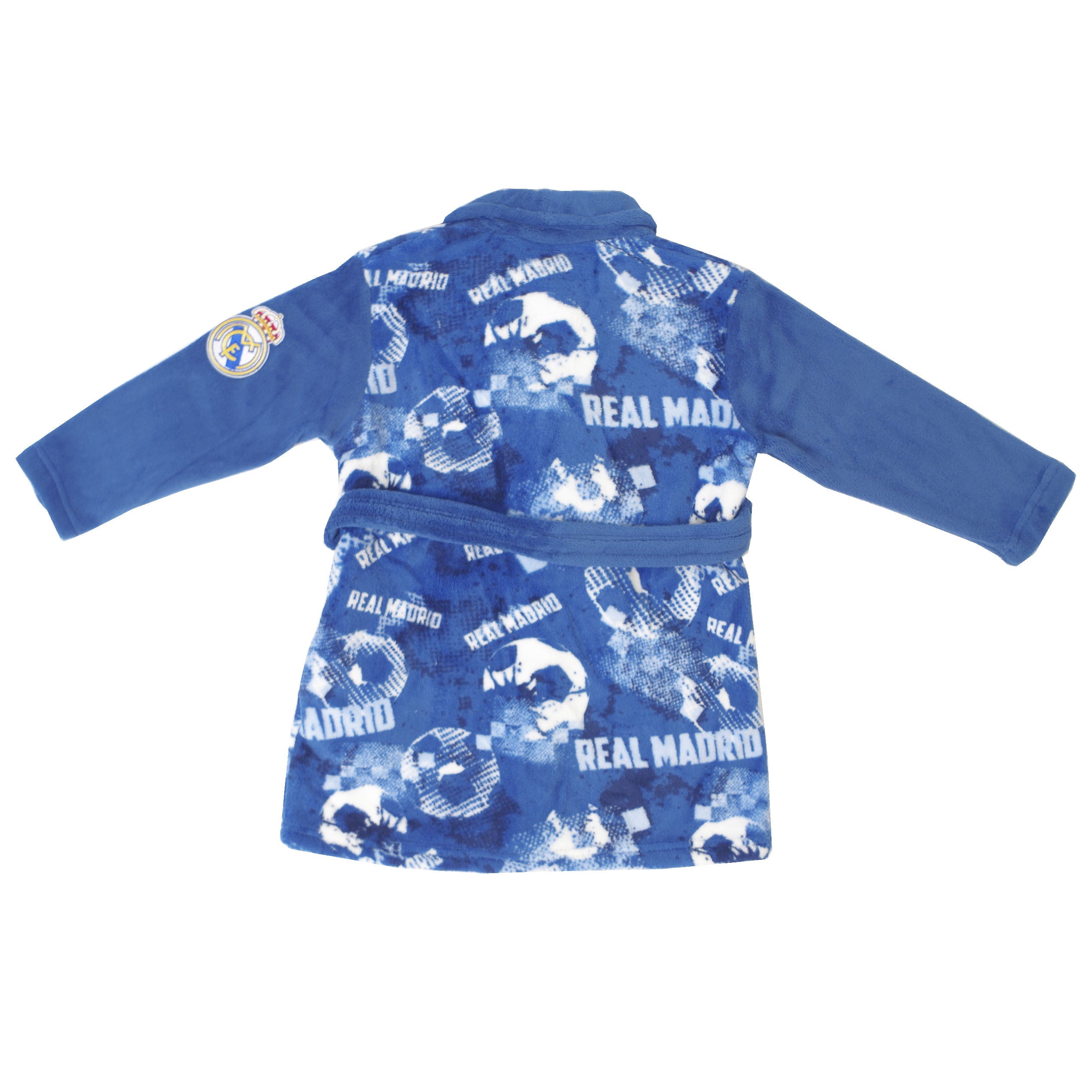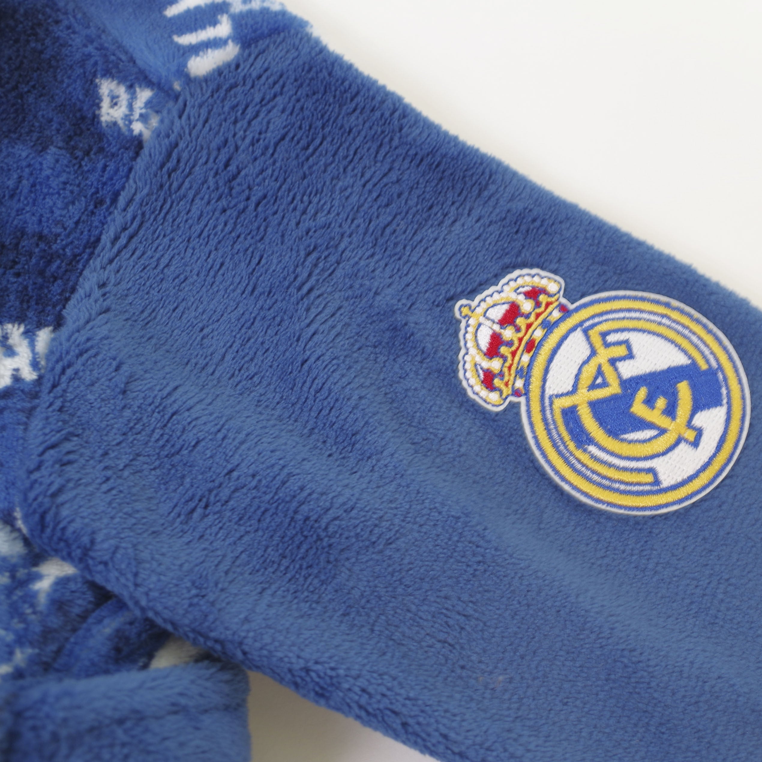Peignoir en polaire pour enfant imprimé avec des motifs du Real Madrid.