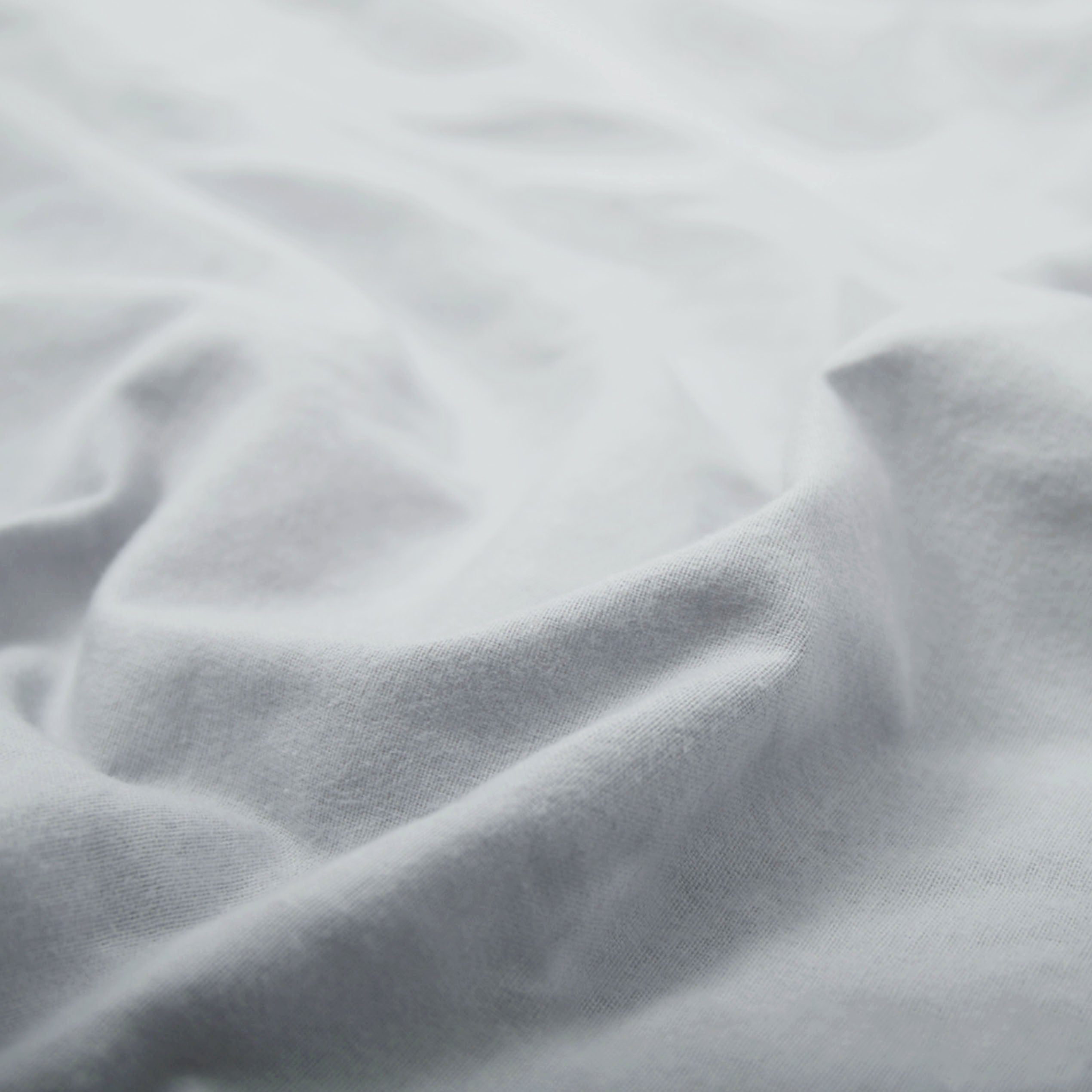 Housse de matelas perchée (adouci - toucher pêche) à deux faces, avec quatre points d'ajustement élastiques, adaptable. Grammage de 160gr/m2.